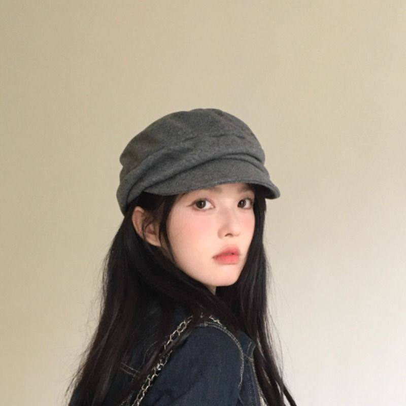 平顶褶皱山本风2025秋冬新款日系复古马术帽报童帽休闲