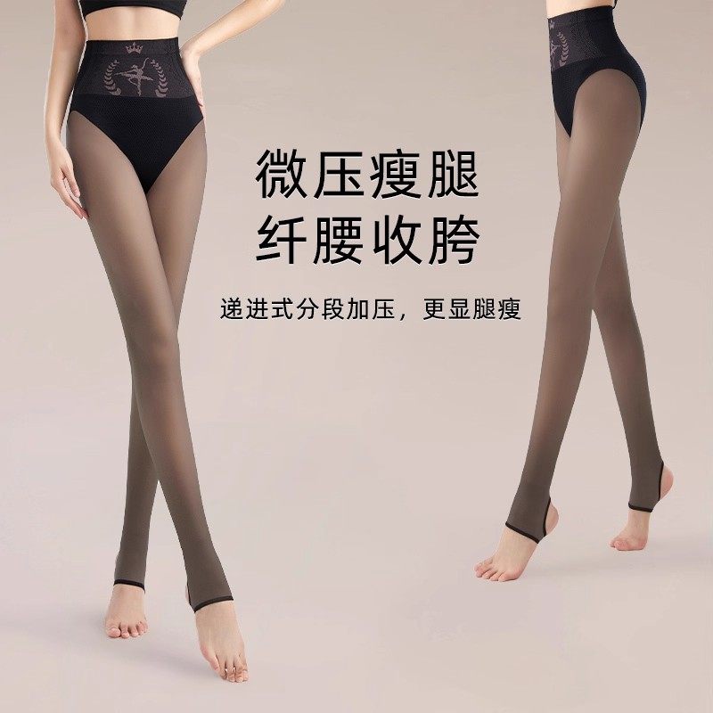黑透肤光腿神器女秋冬季裸感高腰打底裤一体无缝加绒假透肉连裤袜