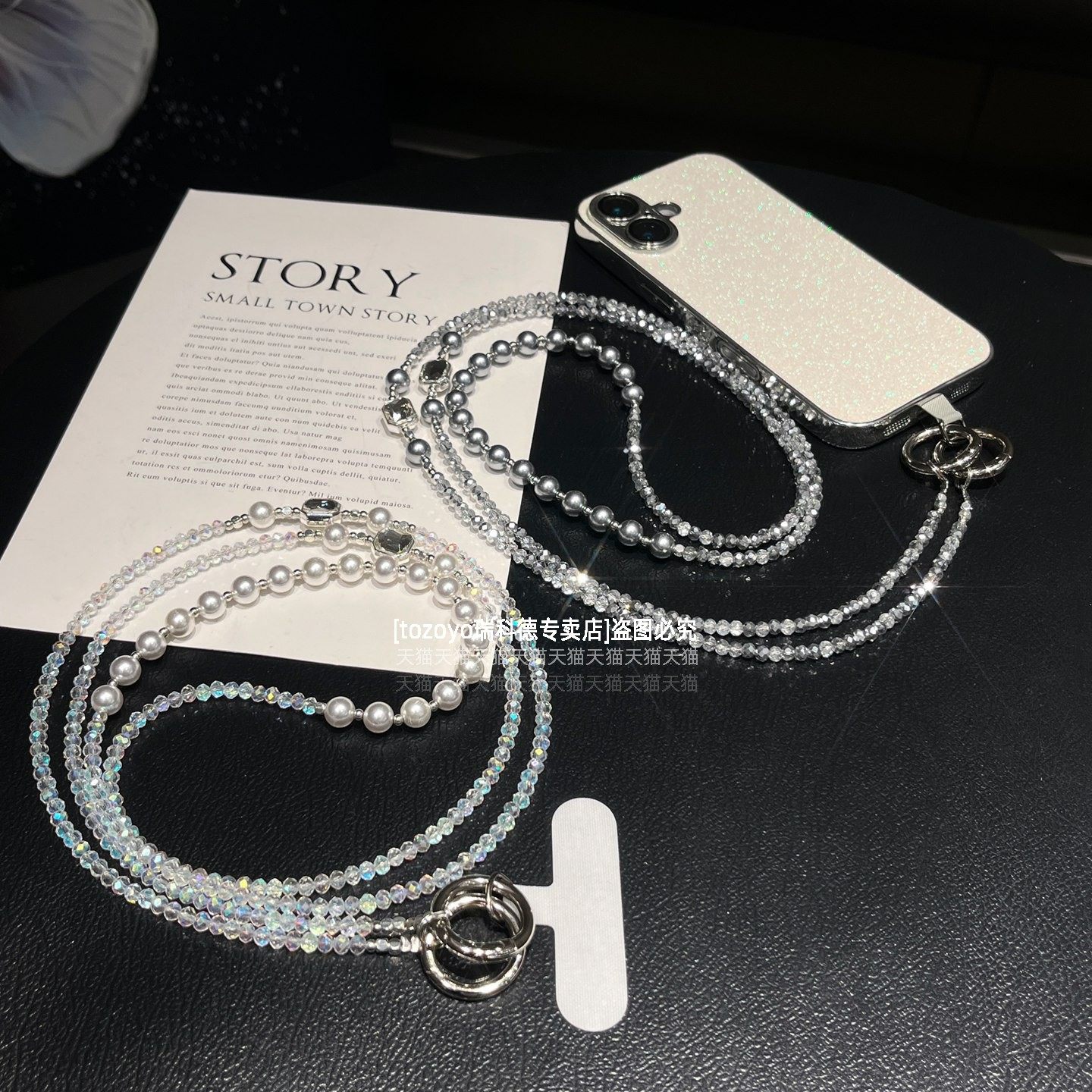 简约设计感手机链轻奢大牌斜挎可背水晶挂链精致爆闪珍珠串珠链条包包替换背带女相机防丢挂件高级长款垫片壳