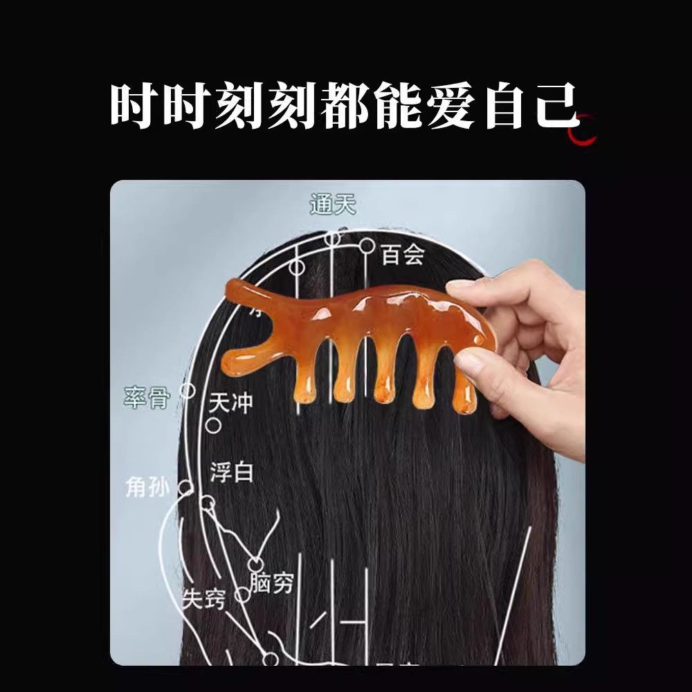 梳子牛角梳牛骨梳梳经络头按摩器手指.疗按摩五指养生男女梳匠人