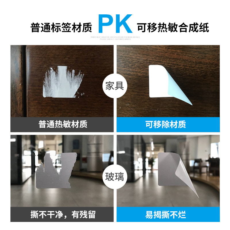 可移除不留胶热敏标签纸五防热敏合成纸撕不烂不干胶60x40*30 50 70 80五防家具板材玻璃易撕取条码打印贴纸