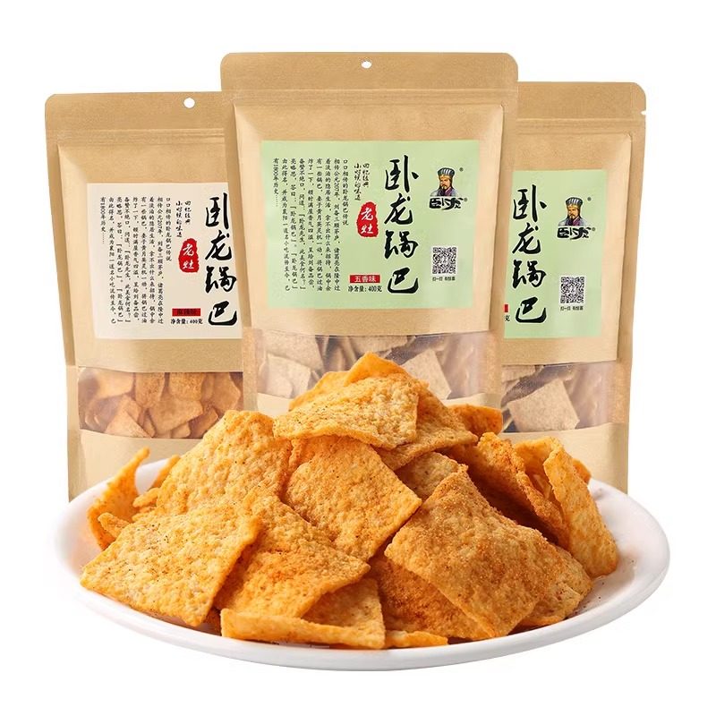 卧龙老灶锅巴400g小零食襄阳特产花椒休闲食品猫耳朵麻辣怀旧夜宵