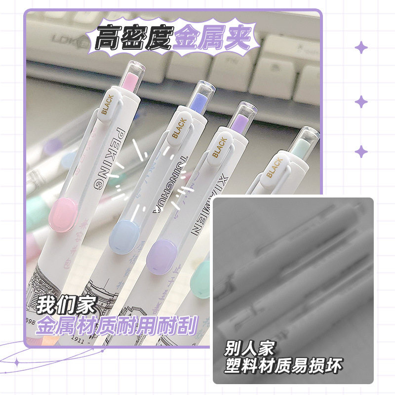 ST刷题笔高颜值按动中性笔圆珠笔黑色水笔小学生专用考试0.5速干碳素笔水性黑笔按压式做笔记签字笔非按斤卖