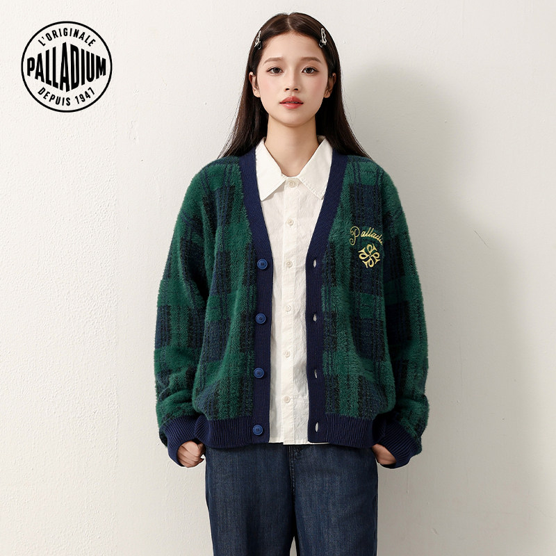 PALLADIUM帕拉丁毛衫复古V领精致刺绣男女款开襟毛衫1012738