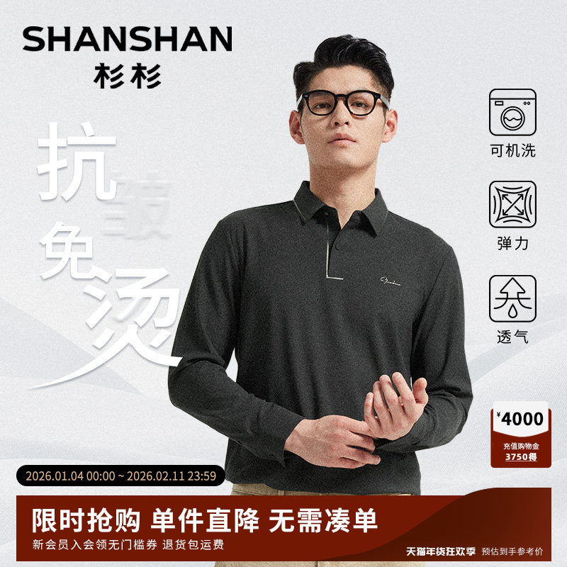 杉杉男士长袖t恤polo衫男装上衣2025春秋季新款爸爸翻领商务休闲