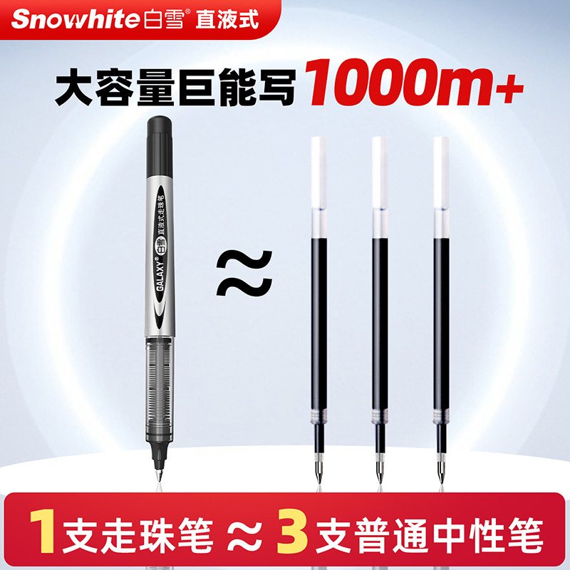 白雪直液式走珠笔中性笔155/166全针管型子弹头黑色碳素水笔0.5mm考试用签字笔学生用圆珠蓝红笔ins日系文具