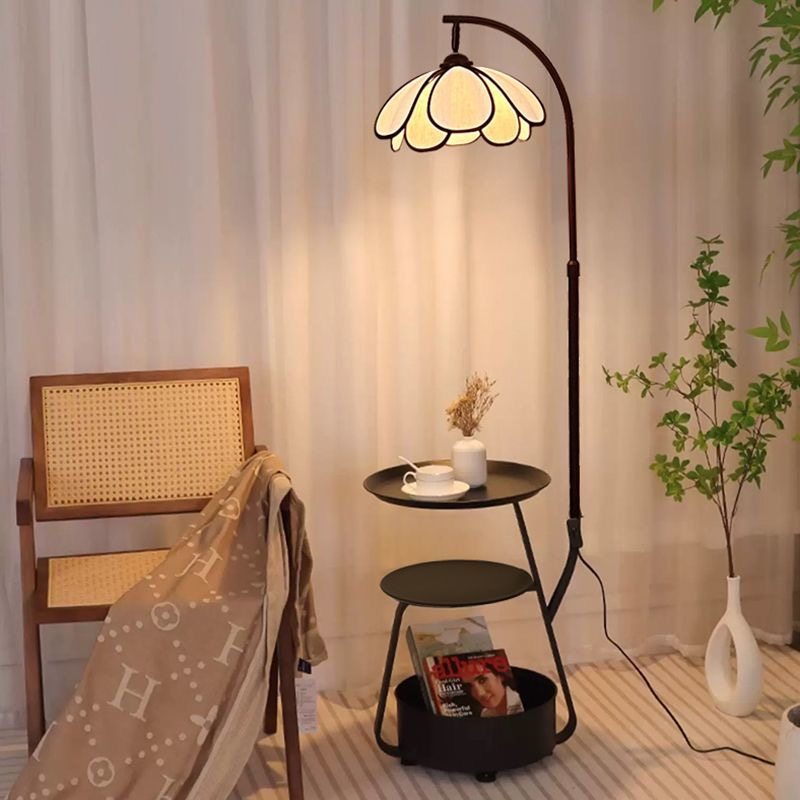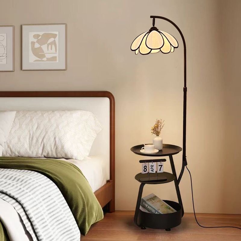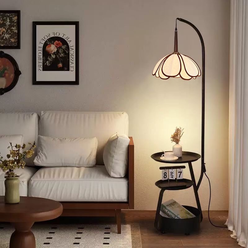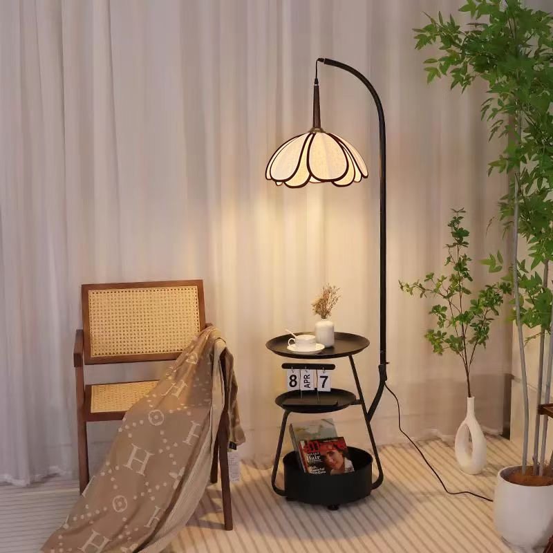 极简客厅书桌花瓣落地灯中古风钓鱼灯置物架一体氛围灯法式茶几