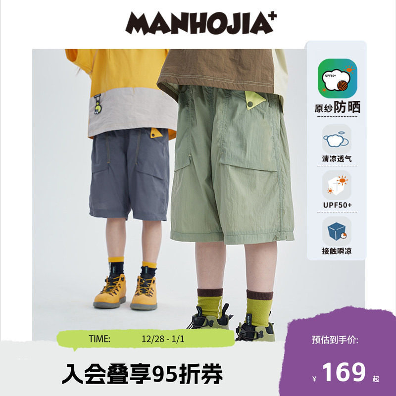 upf50+漫画家潮童装弹力拼色超轻夏季防晒女男童裤子夏装短裤