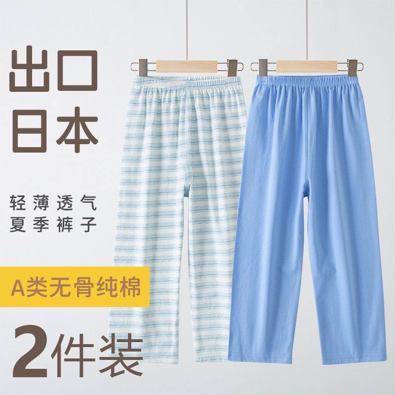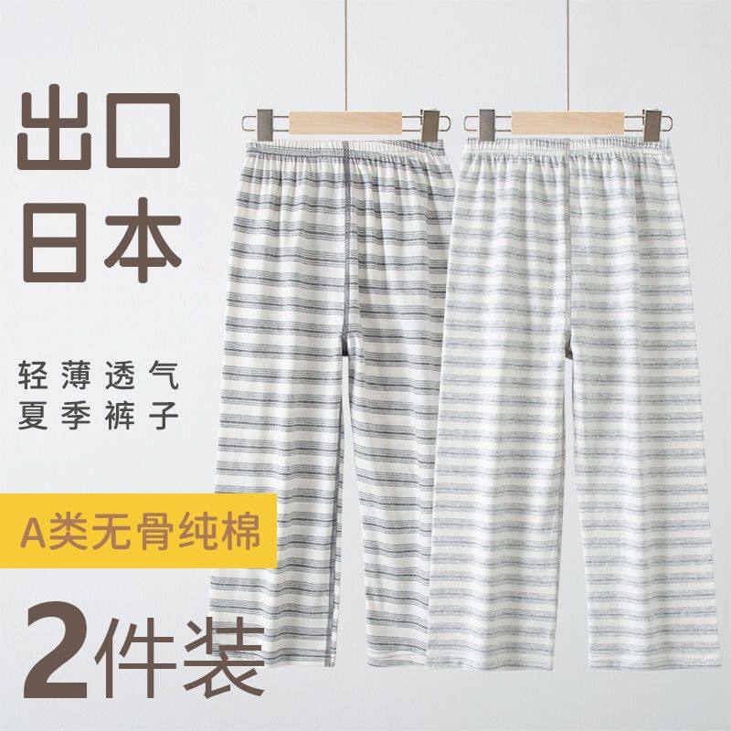 出口莱卡棉a类睡裤男童女童九分裤薄款中大童家居裤男孩春秋纯棉