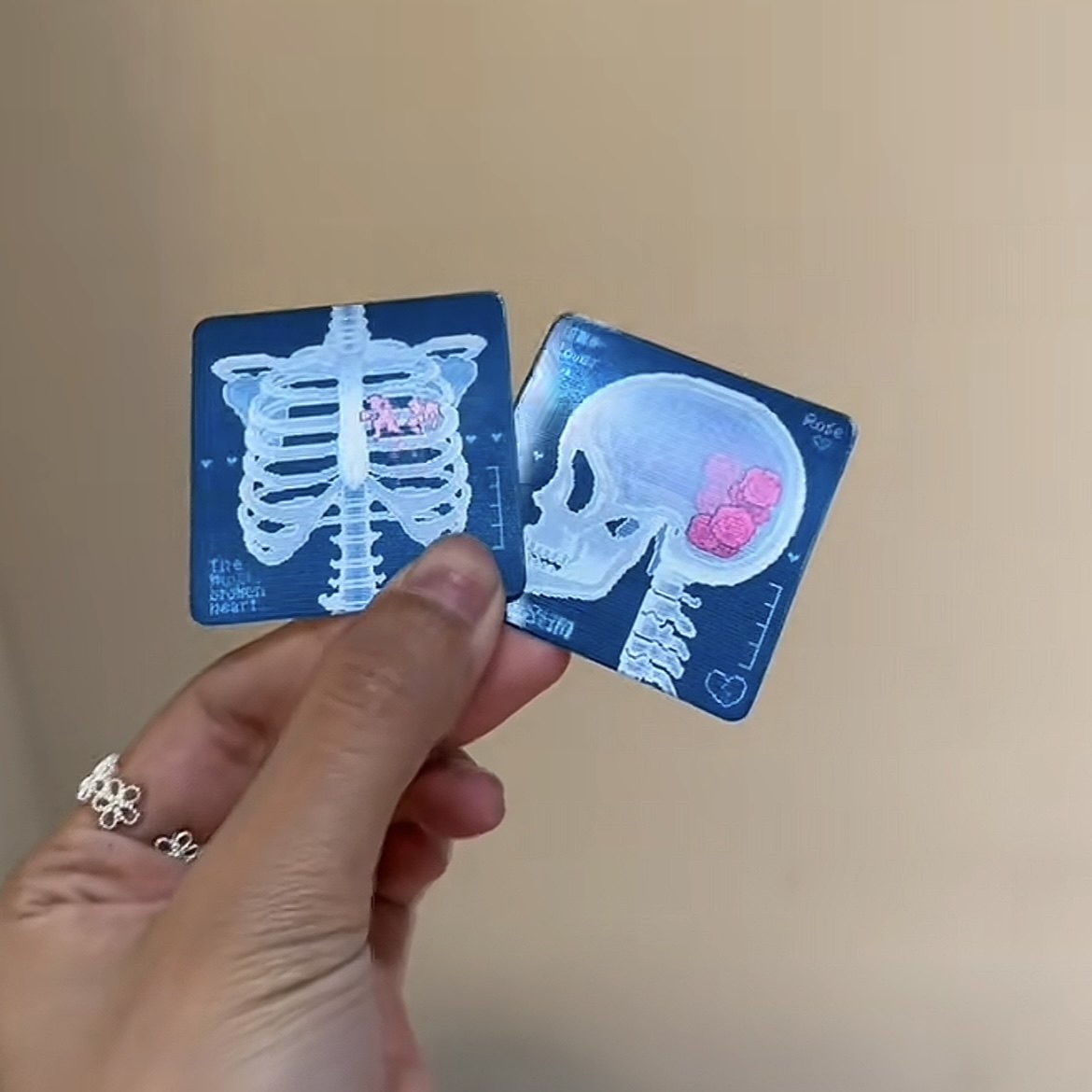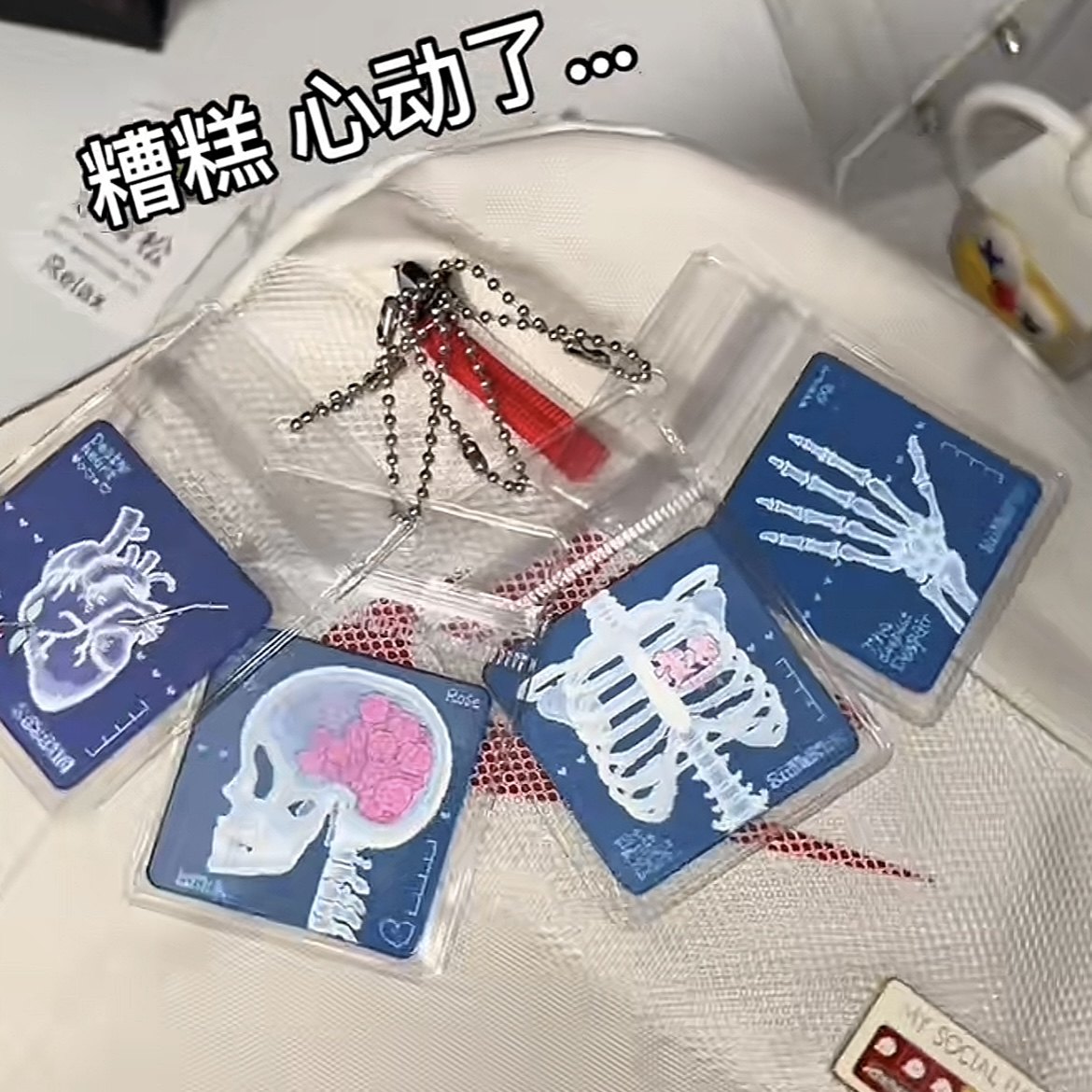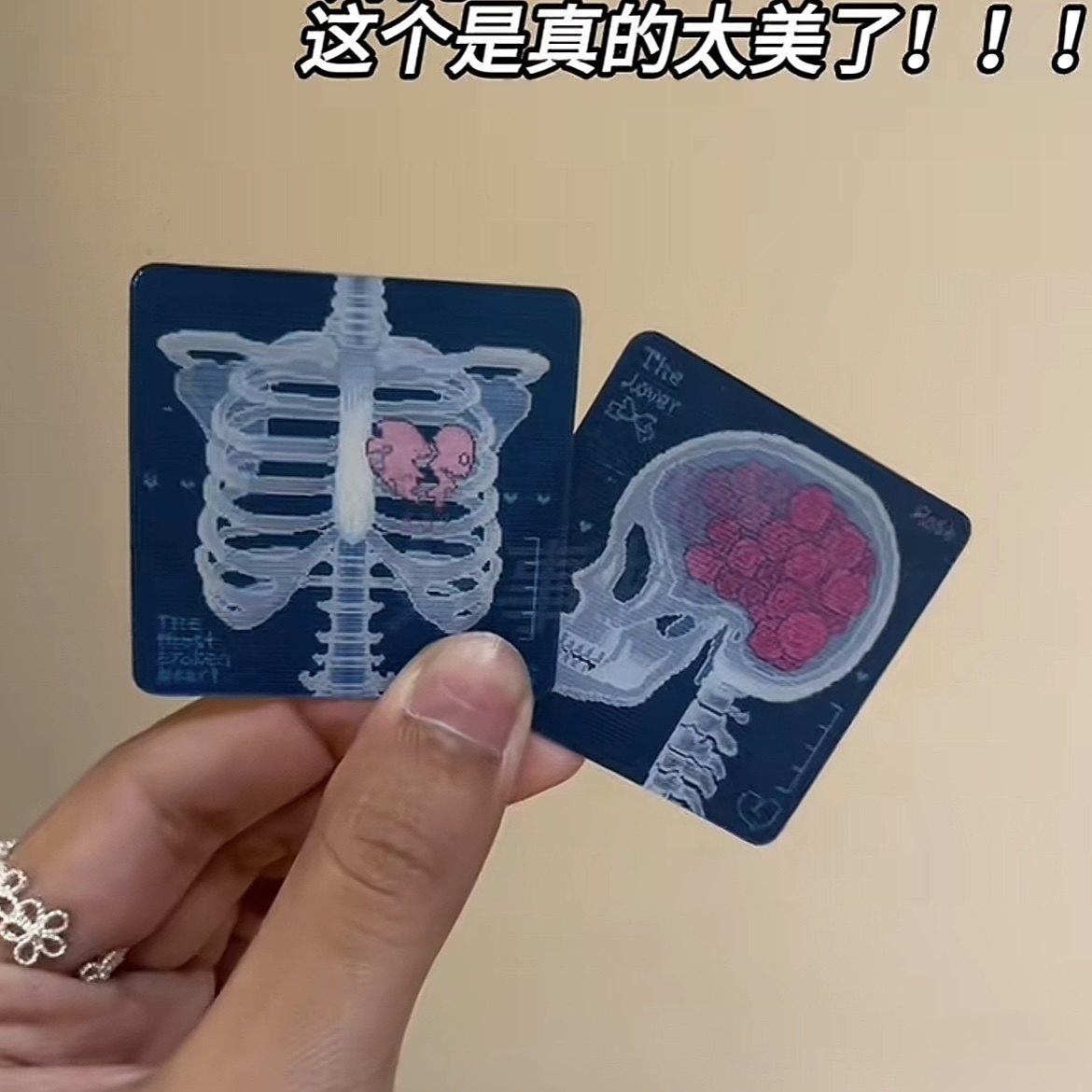 蔷薇骷髅光栅卡创意多变ct胶片风骷髅小挂件多功能书包挂坠送女友