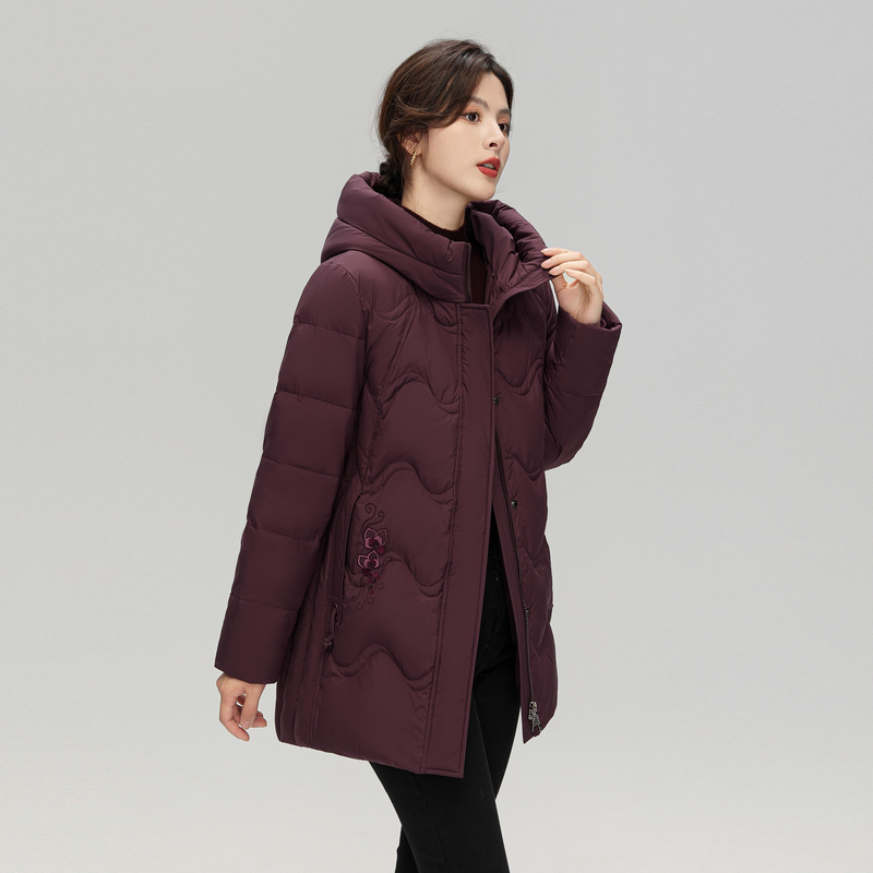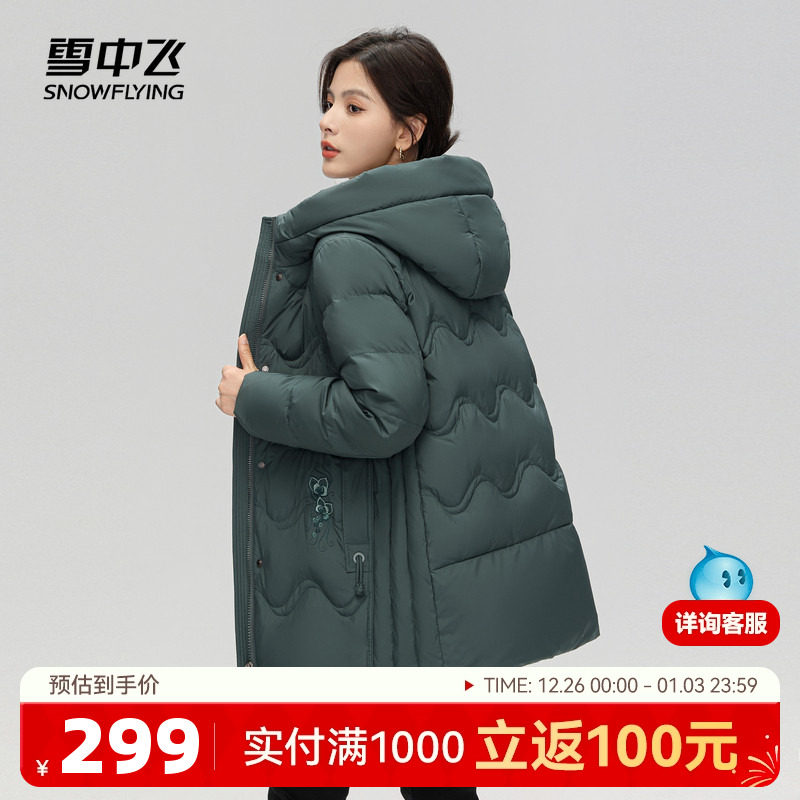 雪中飞2025冬新款女士中老年妈妈短款羽绒服连帽休闲简约保暖外套