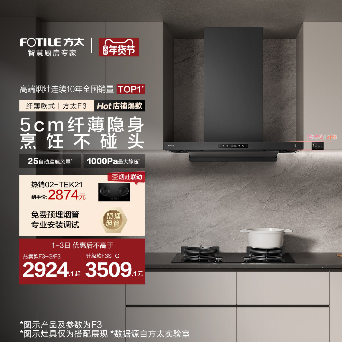 [纤薄顶吸]方太F3/F3S顶吸抽油烟机抽风家用大厨房吸力官方旗舰店