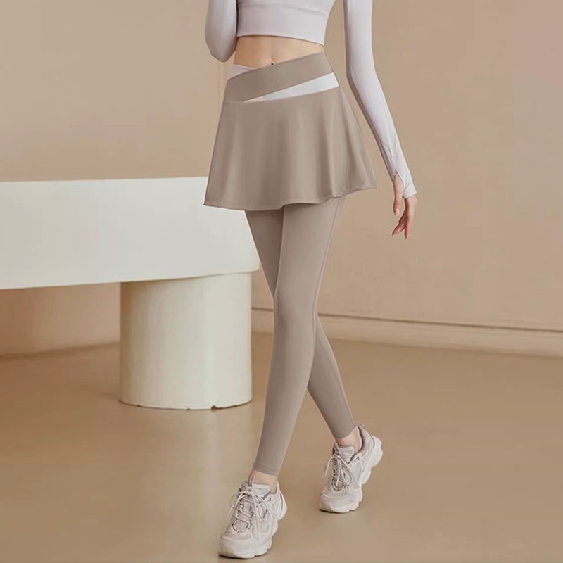 新款秋季假两件透气速干裤运动裙裤晨跑普拉提健身长裤瑜伽服裙子