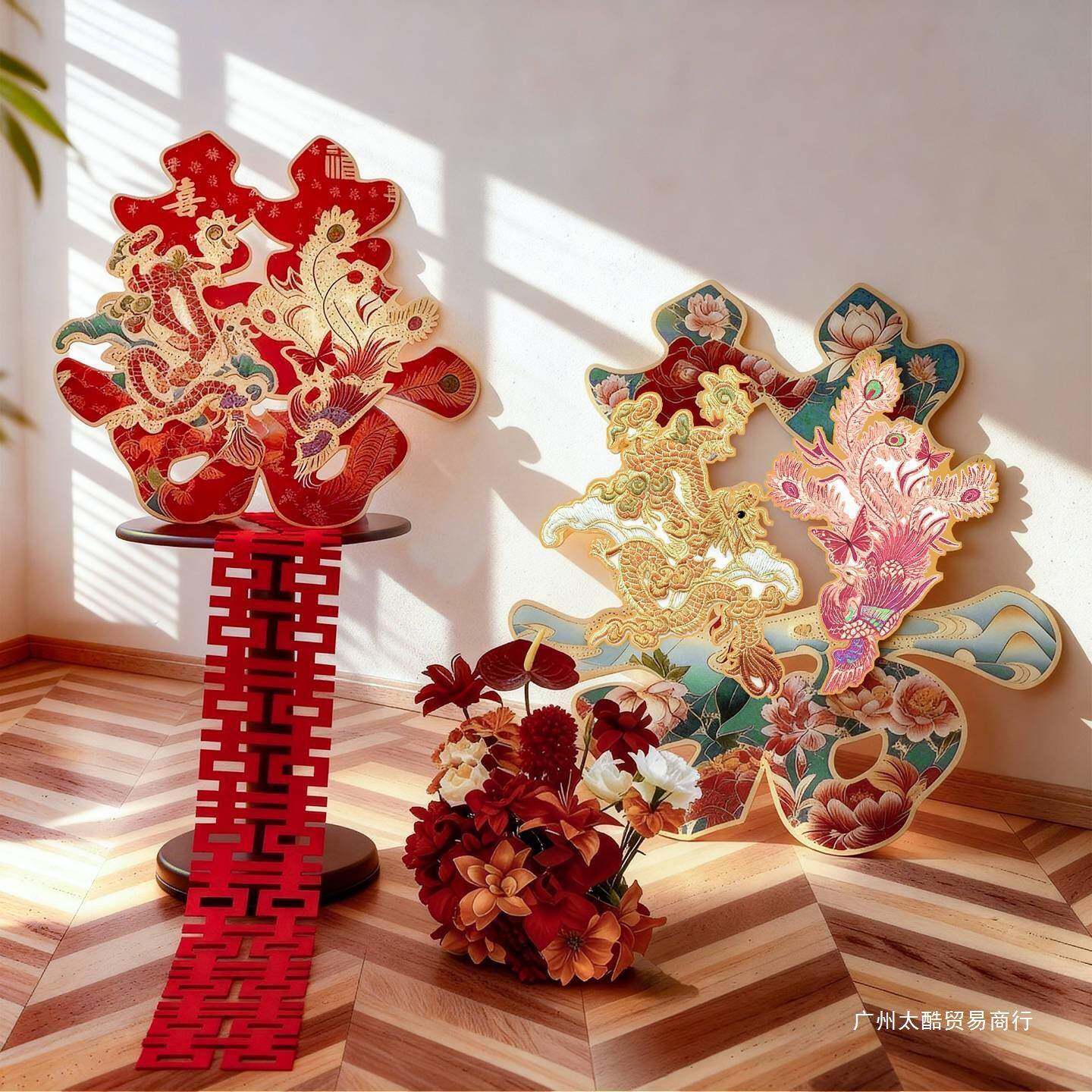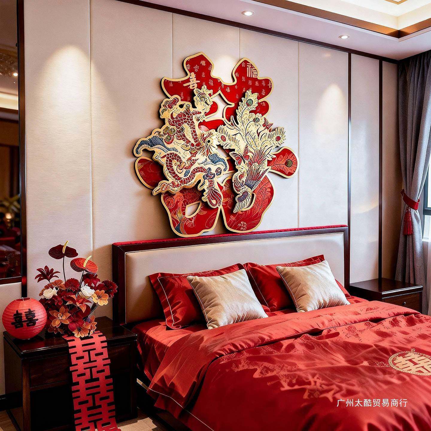 结婚婚房氛围龙凤喜字高级感装饰床头摆件客厅背景墙柜子拍照布置