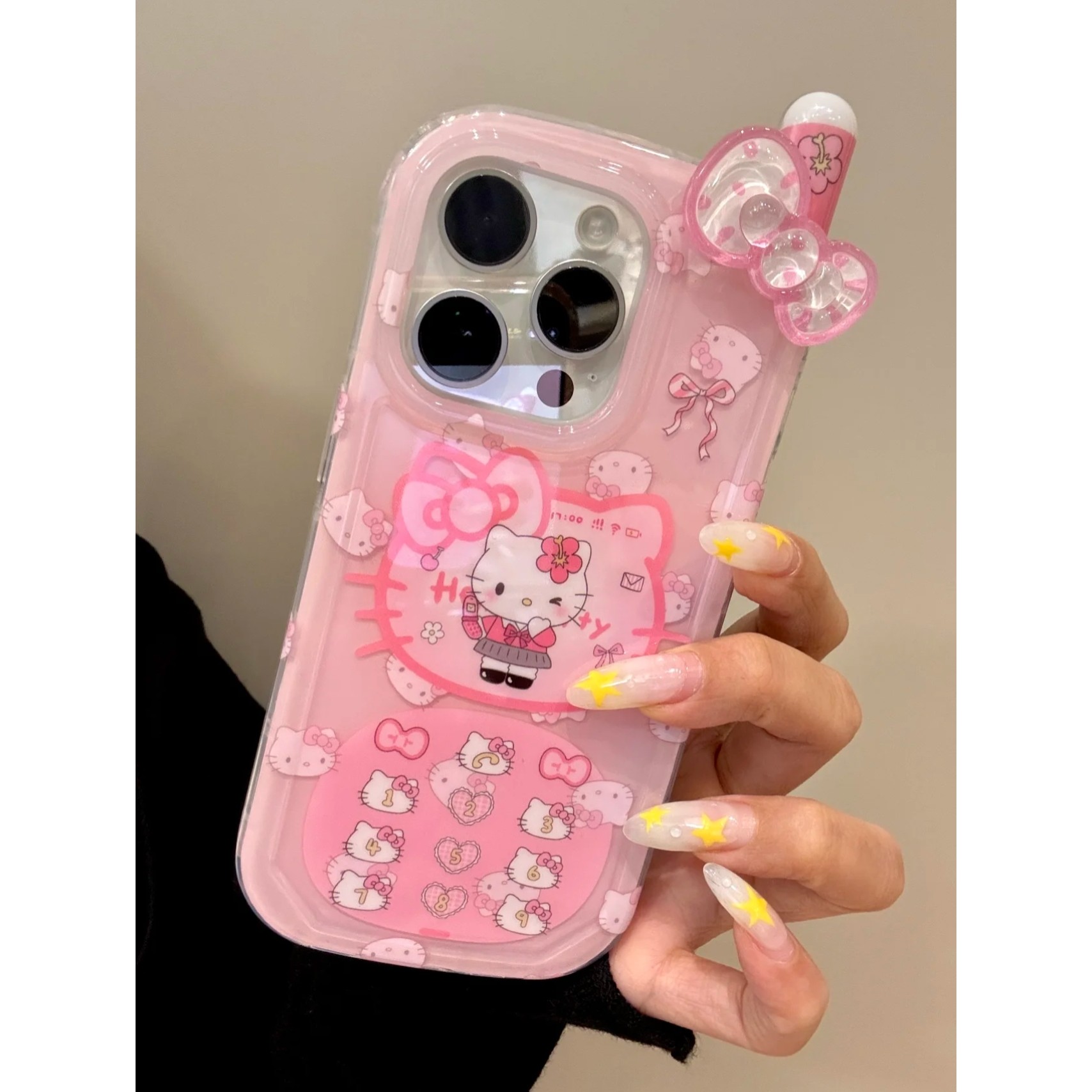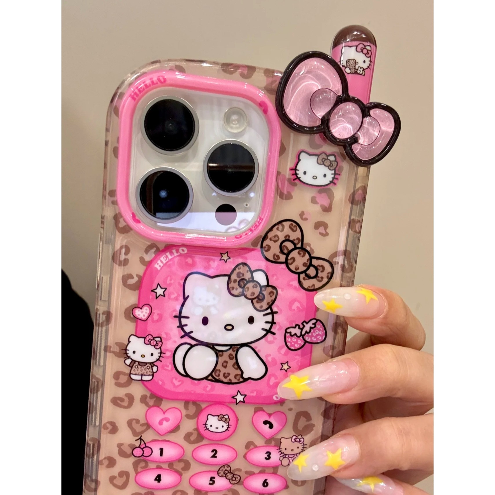 MOMOMOSTUDIOS可爱ins卡通豹纹KT蝴蝶结大哥大适用iPhone16promax新款15pro苹果手机壳14pro全包13防摔软壳