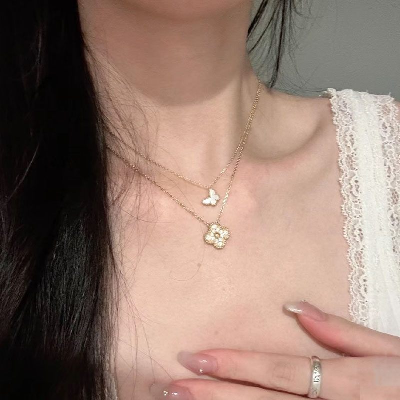 轻奢单花四叶草项链女小众高颜值锁骨链吊坠礼物白金贝母玫瑰金