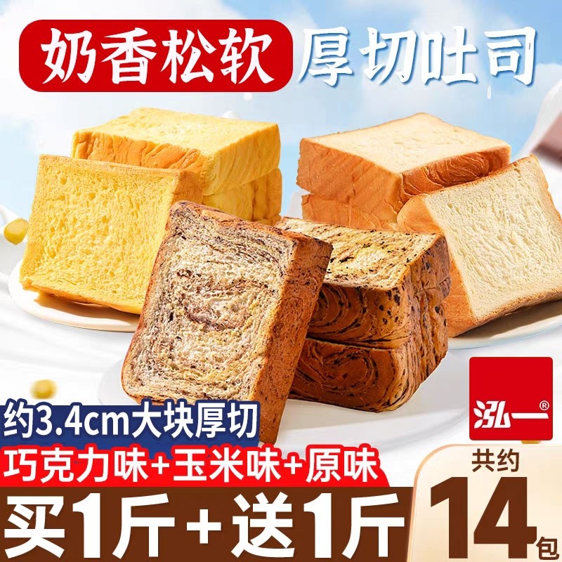 泓一巧克力厚切吐司面包早餐整箱健康代餐小吃小零食休闲食品美味
