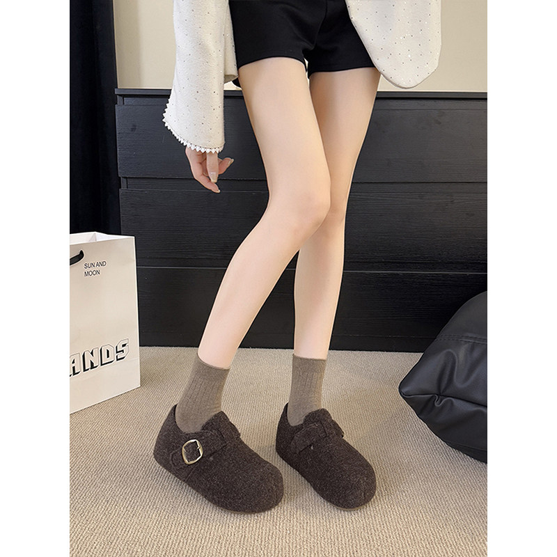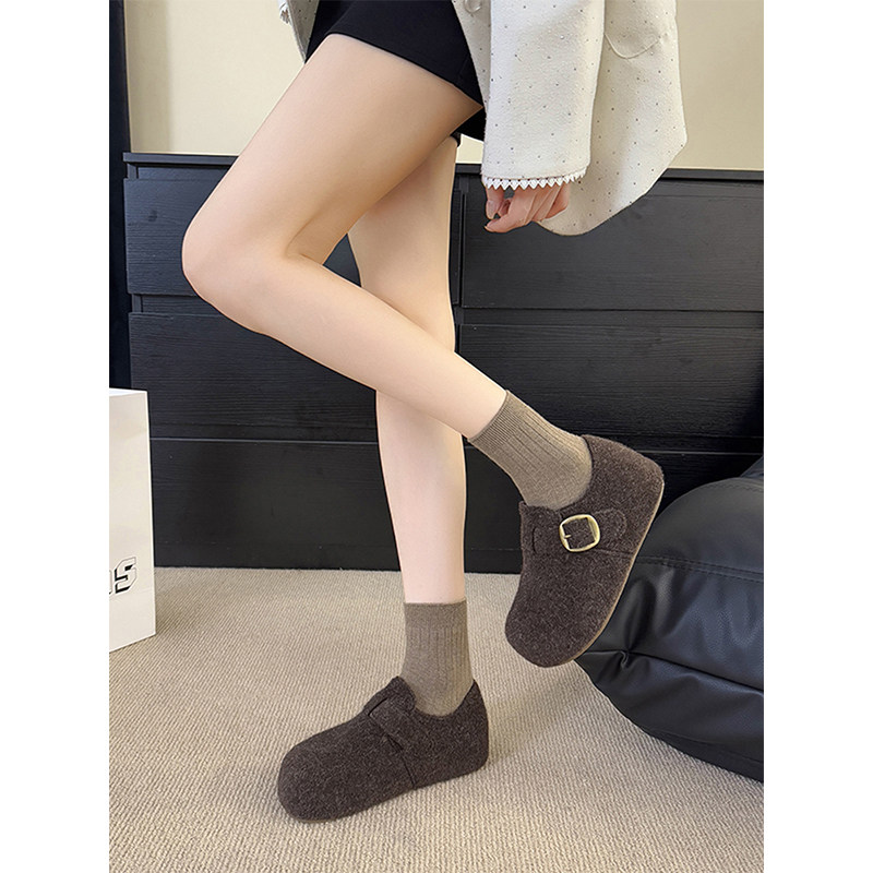 TATAFOCUS~加绒毛毛鞋韩版圆头皮带扣2025冬季新款勃肯鞋女35-28