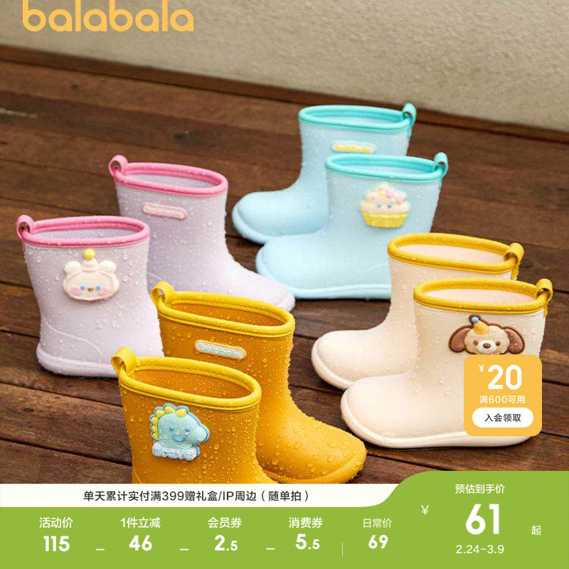 巴拉巴拉童鞋儿童中筒雨靴可爱卡通图案软底舒适外穿男童女童雨鞋