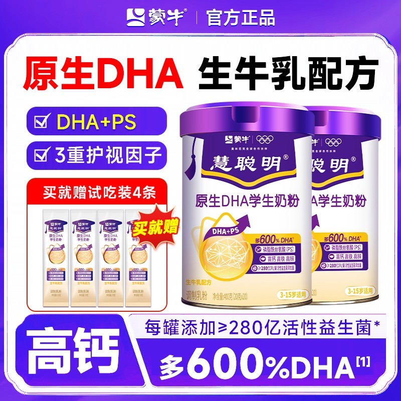 蒙牛慧聪明DHA奶粉400g生牛乳配方学生成长牛奶粉青少年高钙高锌