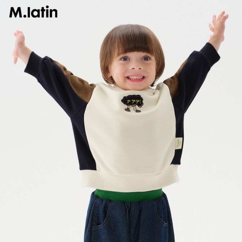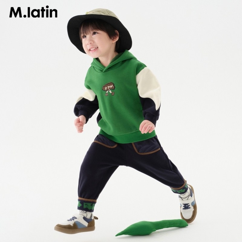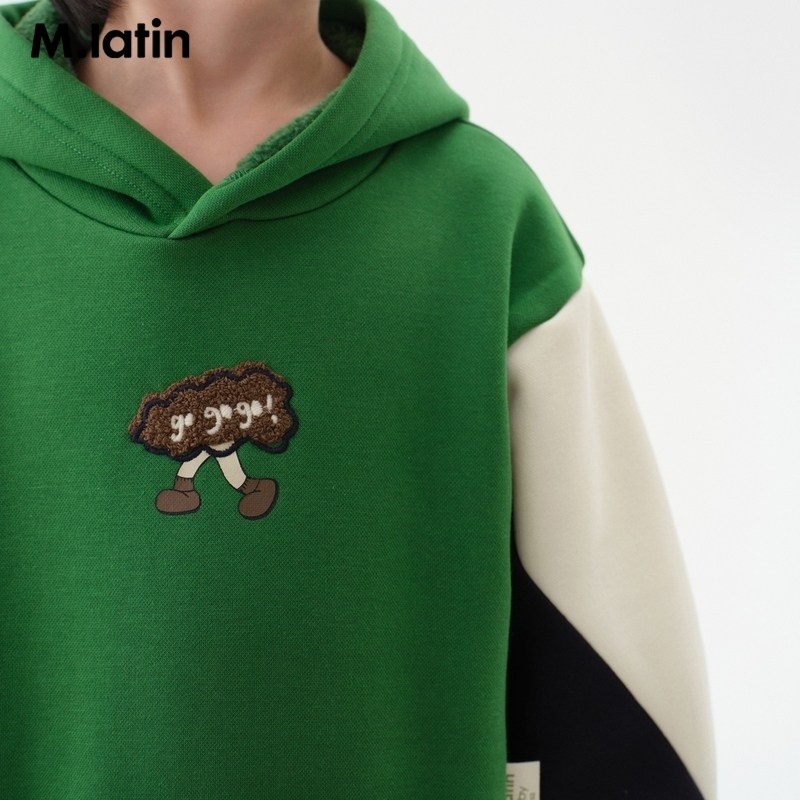 马拉丁童装儿童卫衣冬装新款男小童撞色拼接趣味毛巾绣半高领