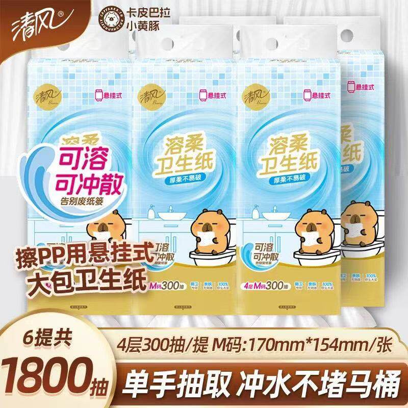 清风抽纸M码棉柔卡皮巴拉4层360张大包加厚纸巾餐巾纸抽面巾纸by