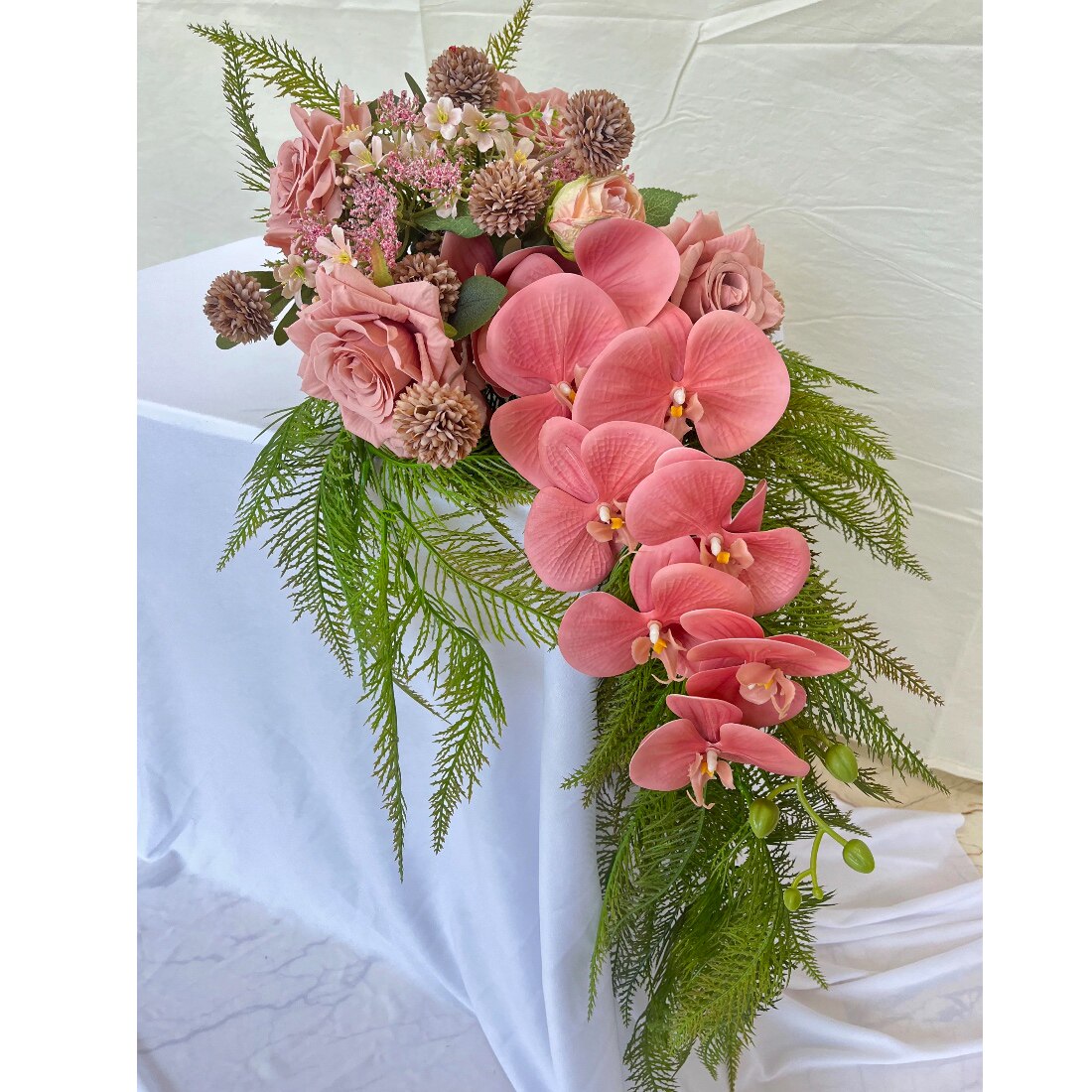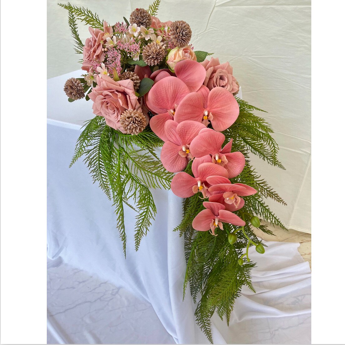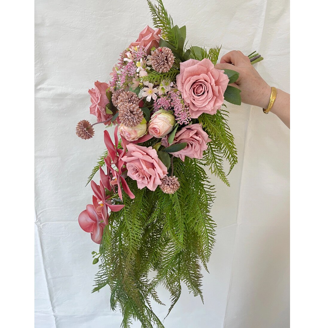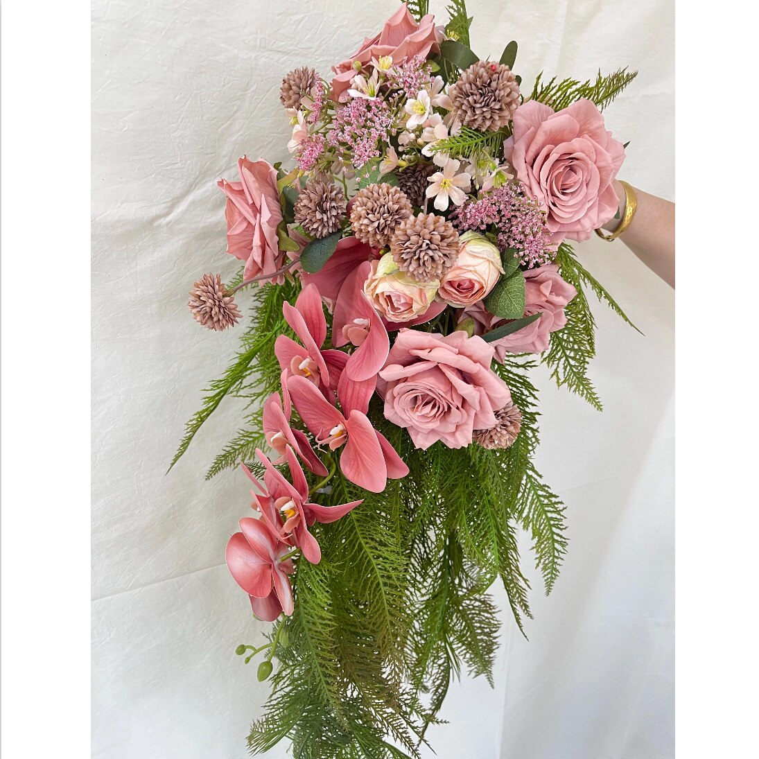 new瀑布手捧花新娘婚礼花束粉色结婚仿真花闺蜜diy礼物摄影道具