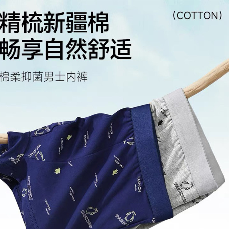 安比斯男士内裤男纯棉7A级抑菌中腰透气四角裤男生短裤衩男式裤头
