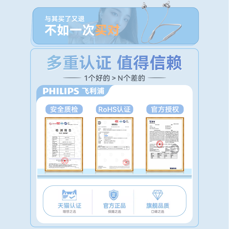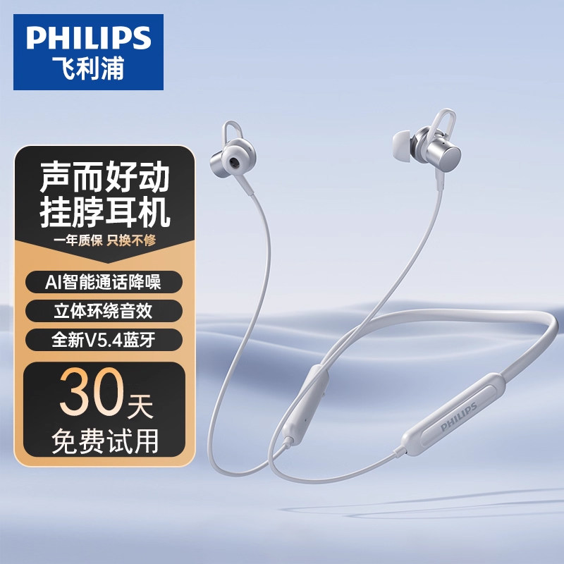【官方正品】飞利浦TAN1120蓝牙耳机挂脖无线入耳式运动2025新款