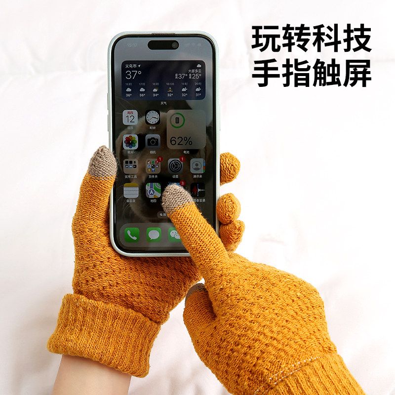 新款触屏手套男女士秋冬季加绒加厚保暖防寒户外骑行毛线针织手指