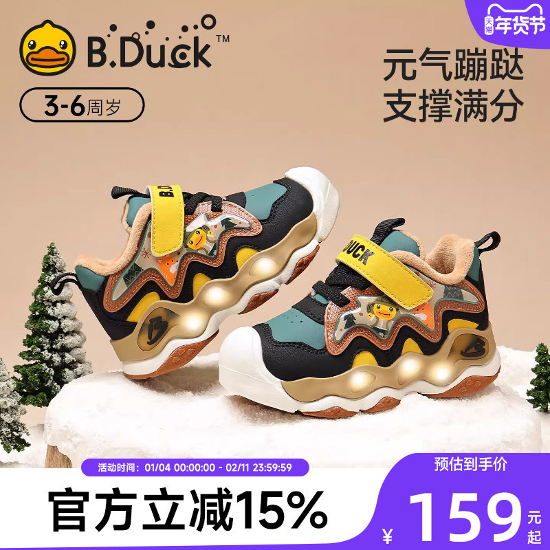 小黄鸭童鞋儿童闪灯鞋冬季新款男童加绒保暖发光鞋子女童运动鞋
