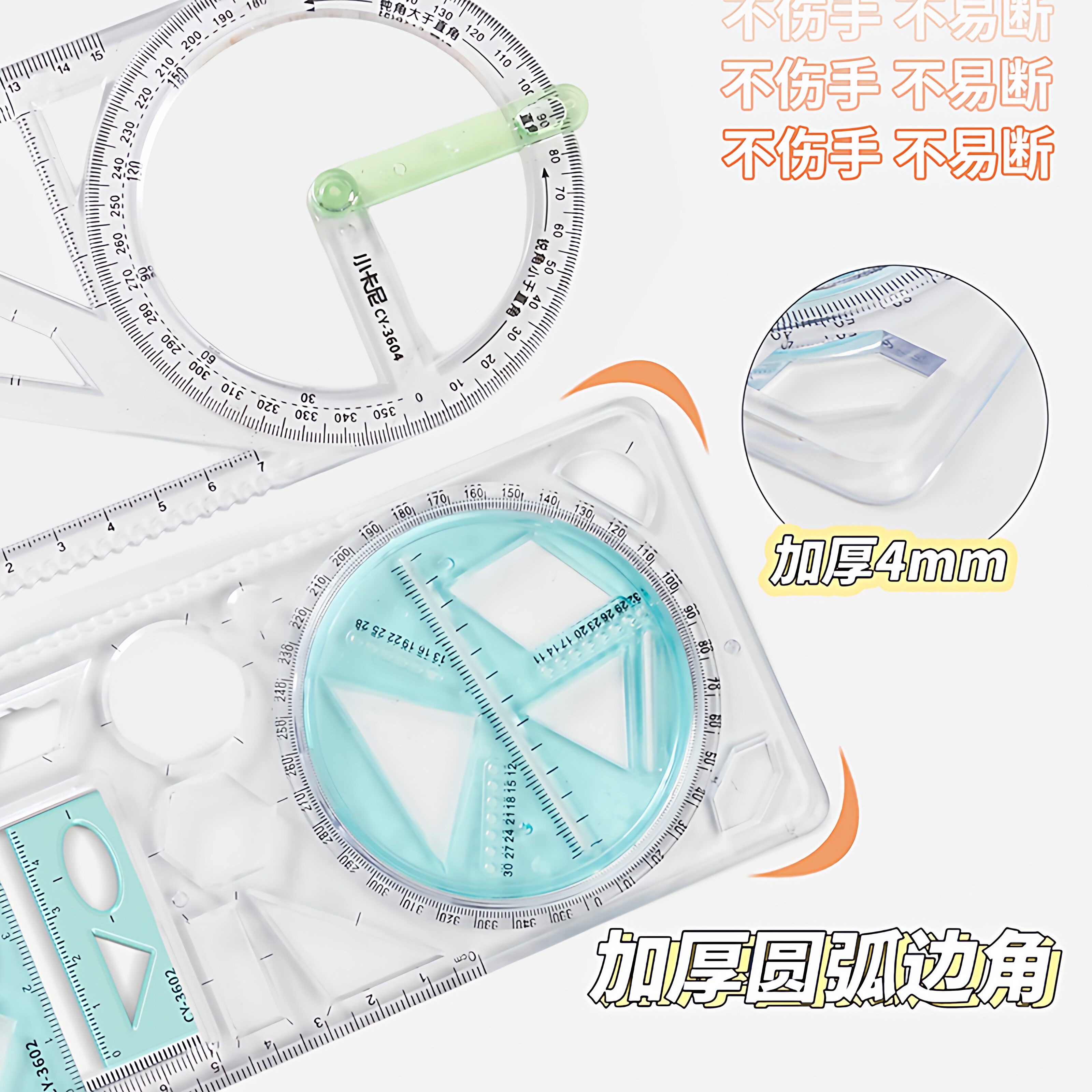 数学多功能绘图尺中小学生几何尺子初高中几何函数尺三角尺量角器