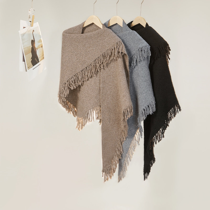白鹿语含羊毛流苏三角披肩围巾25秋冬新款高级感百搭保暖纯色围脖