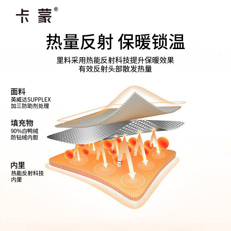 卡蒙男士冬季新款轻量化羽绒平顶帽防寒保暖软顶鸭舌帽东北棉帽