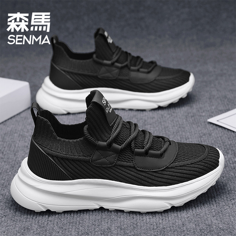 森马透气网面鞋男2025新款飞织网鞋软底轻便黑色男士休闲运动鞋潮