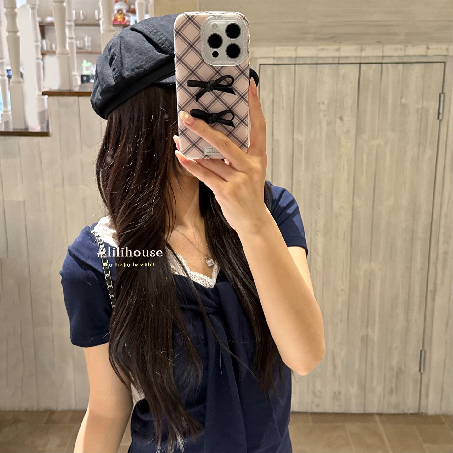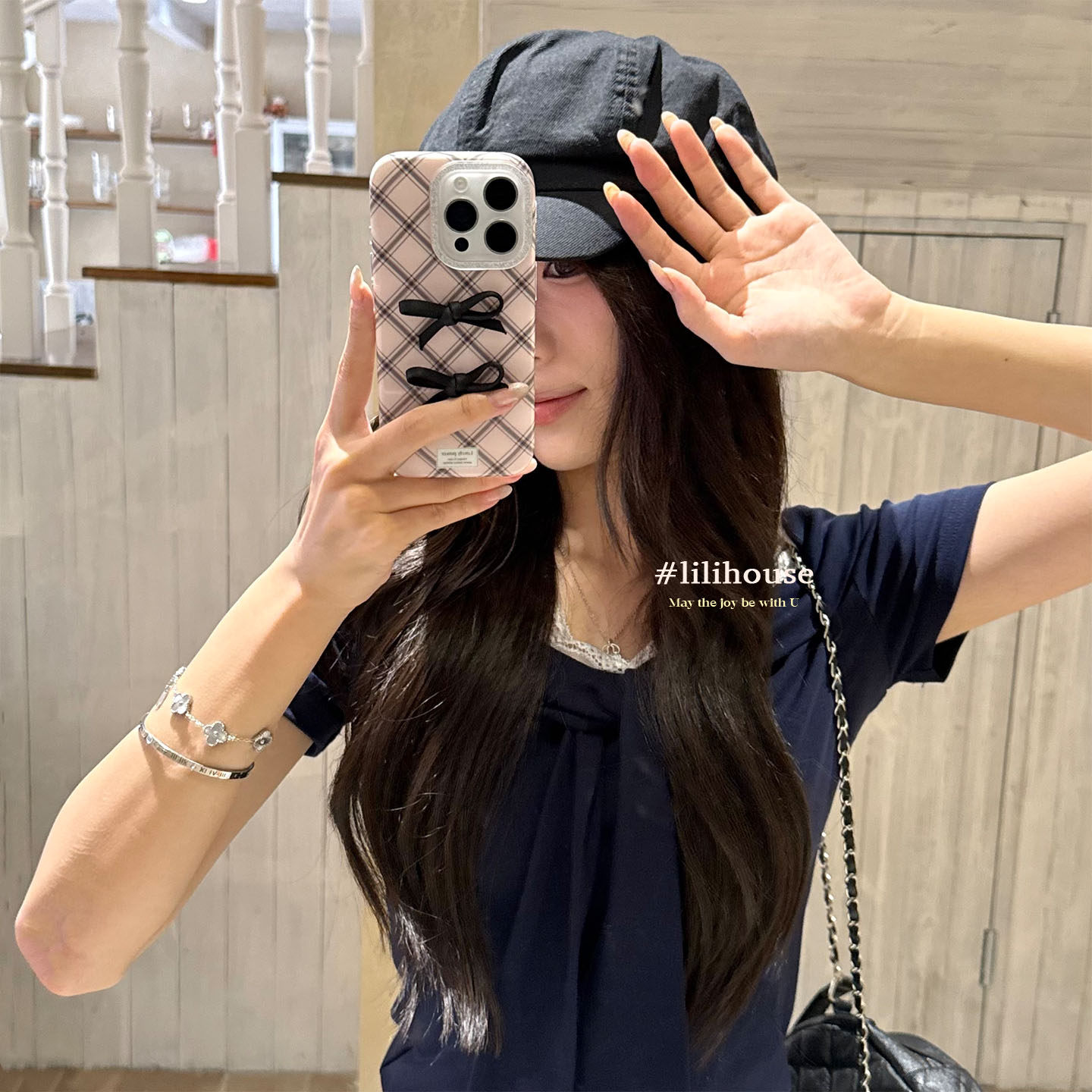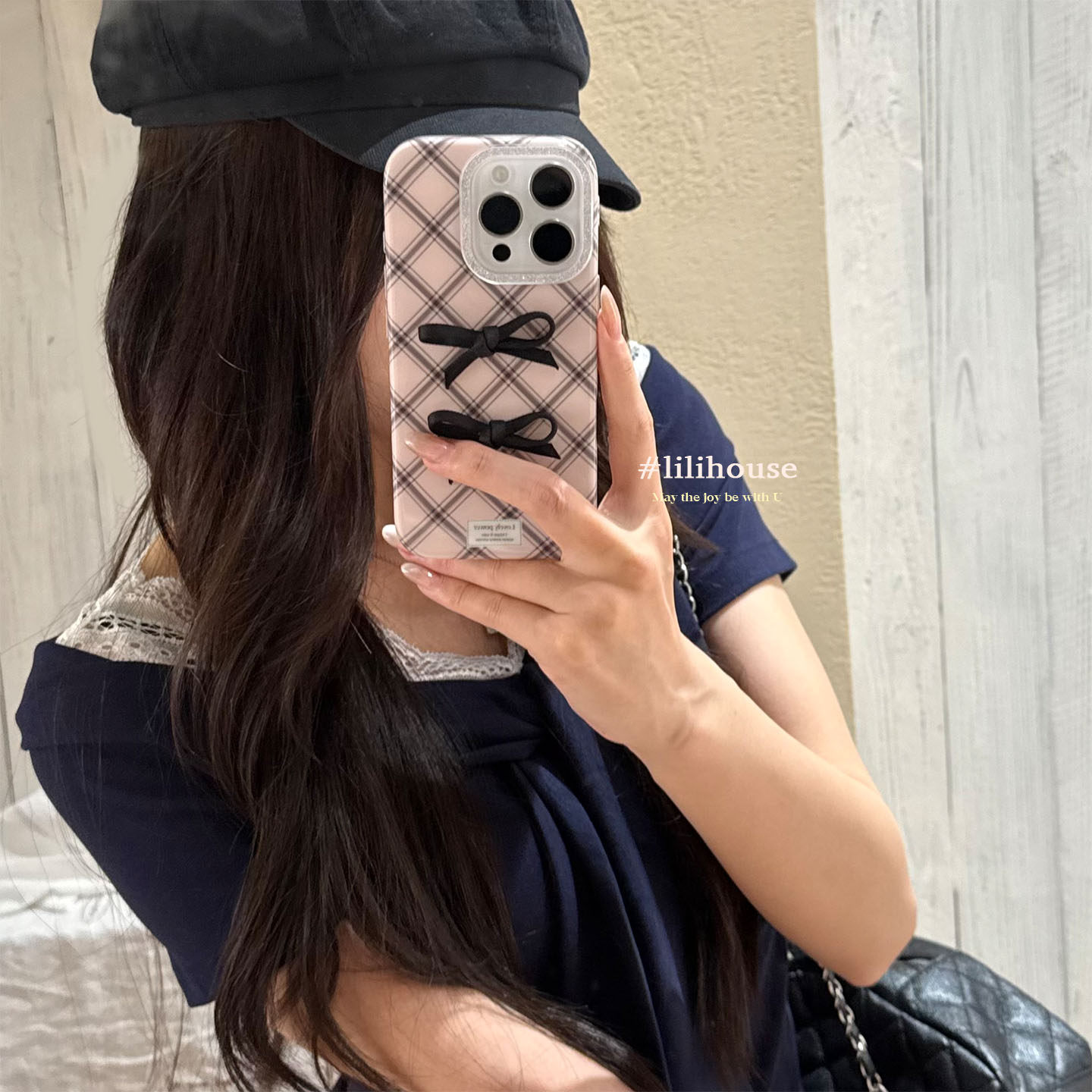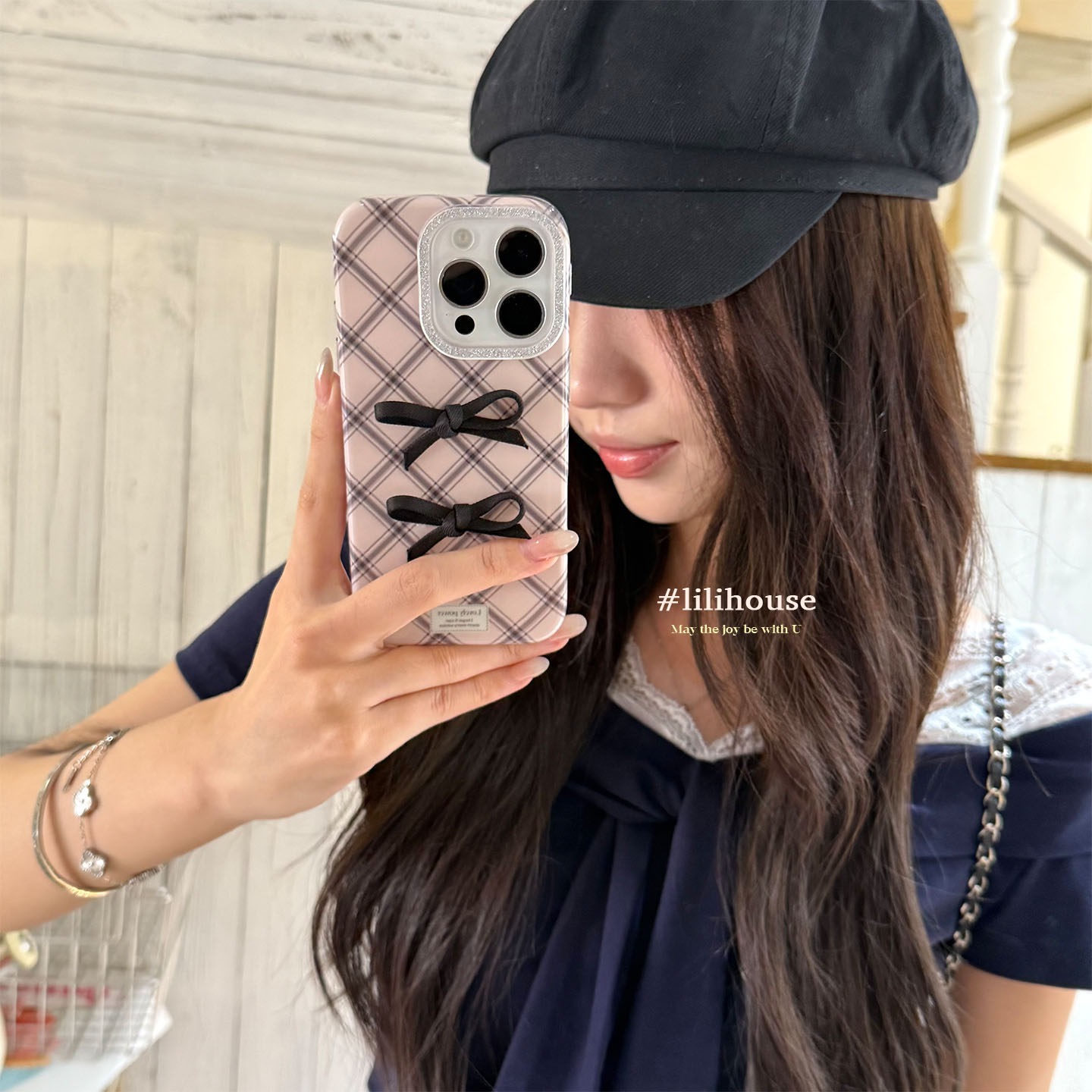 lilihouse韩国ins小众少女菱格纹立体蝴蝶结15适用16pro苹果16ProMax手机壳iPhone16全包14新款14Pro保护套13