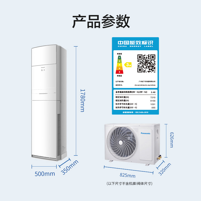 松下3匹纳诺怡变频冷暖两用方柜立式空调柜机家用客厅NJ72F330