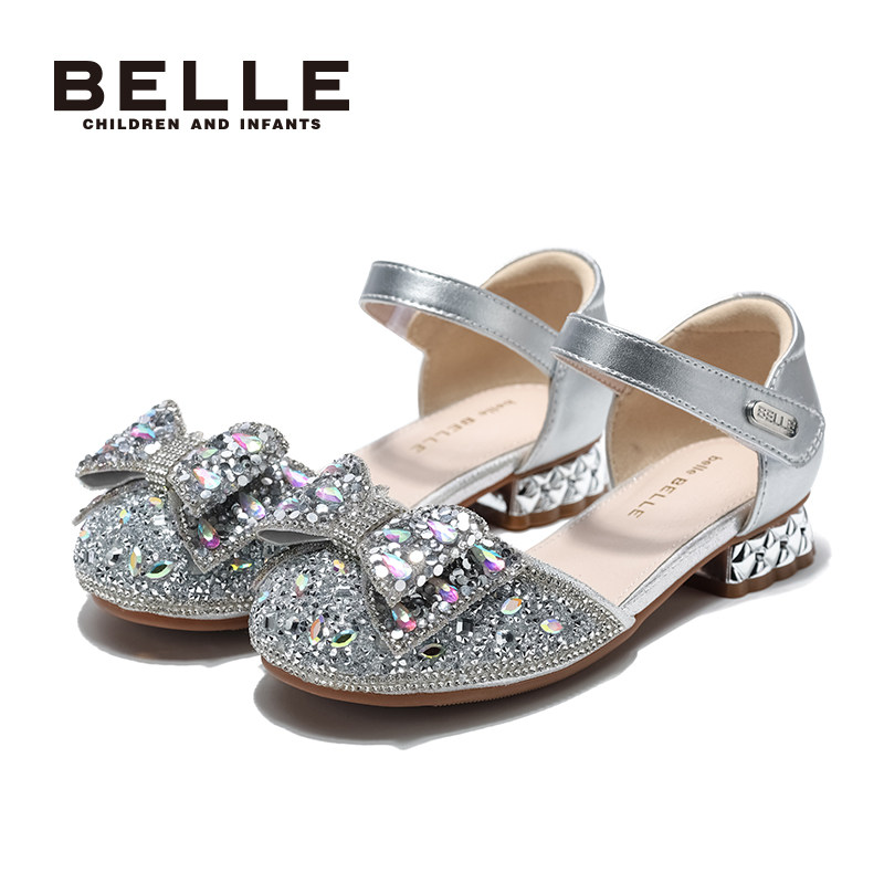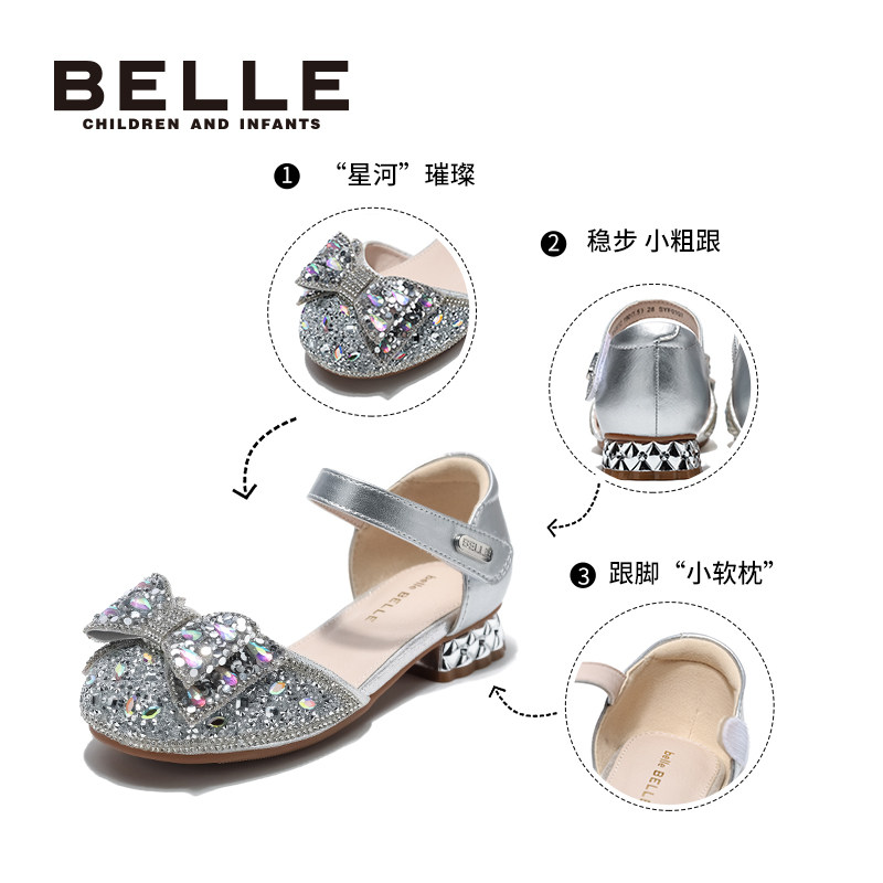 百丽童鞋女童公主鞋小女孩水晶鞋春季新款儿童配礼服单鞋宝宝凉鞋