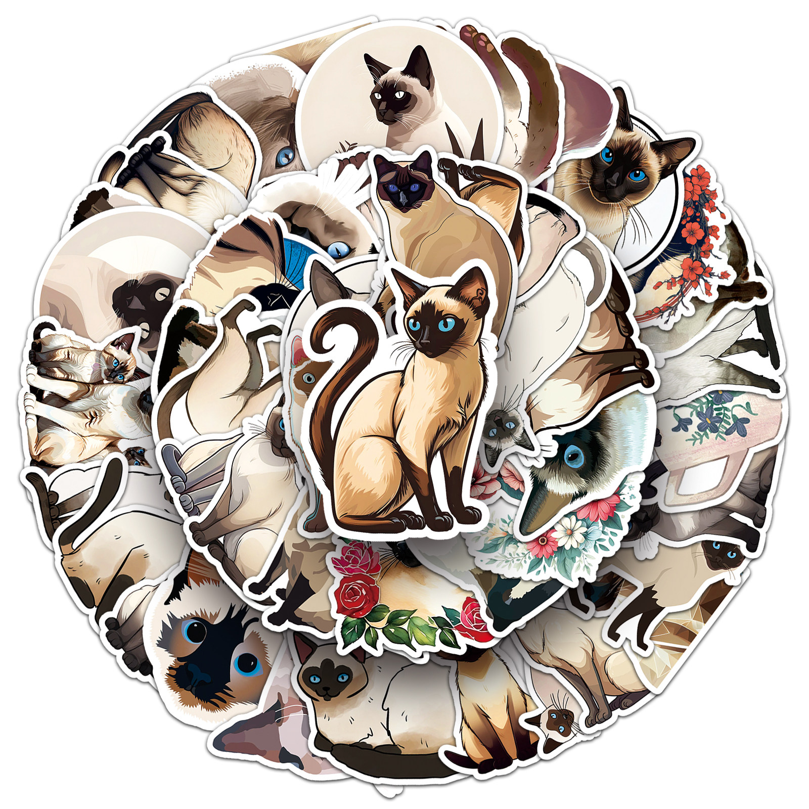 100张暹罗猫卡通贴纸可爱小猫趣味创意图案个性装饰贴画手账吉他头盔滑板车旅行箱充电宝手机壳防水无痕贴纸