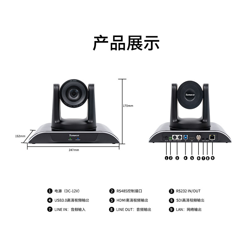 Tenveo腾为远程视频会议摄像头1080P高清AI智能人形跟踪摄像机中大型会议室摄影头光学变焦腾讯会议设备终端