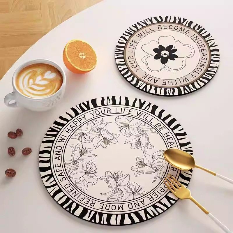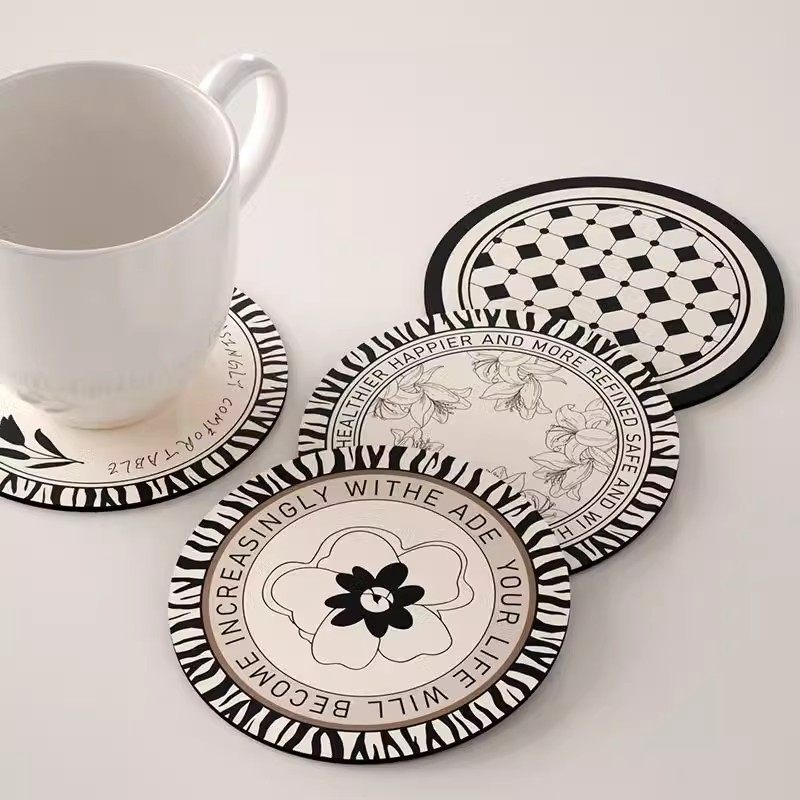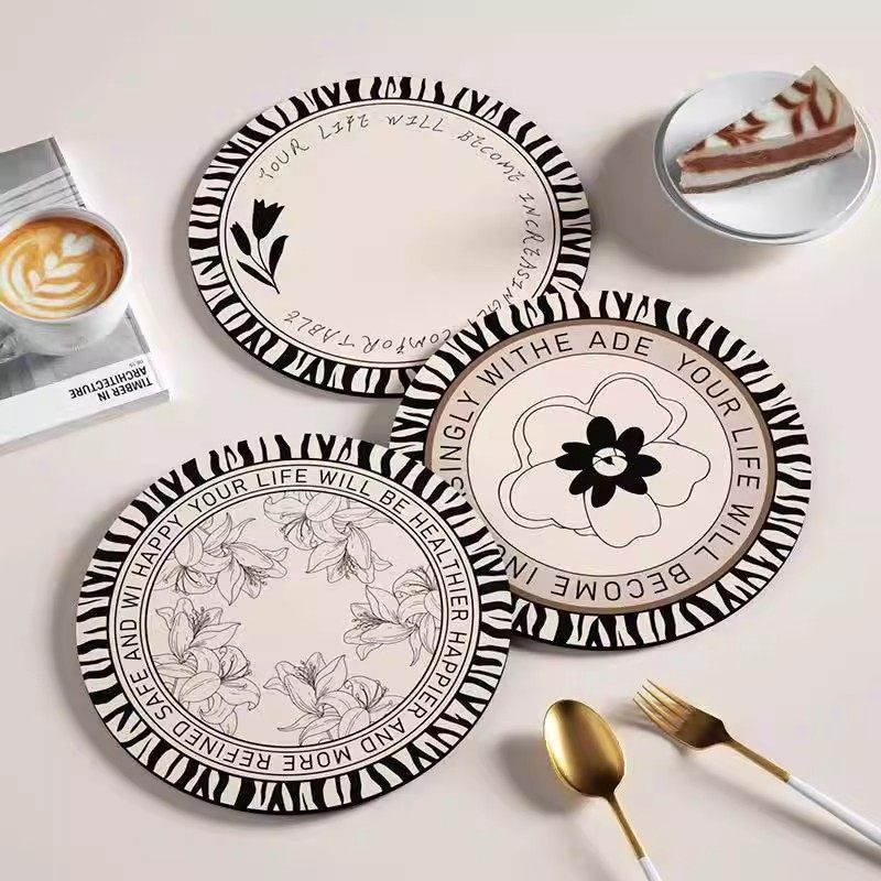 复古水杯垫黑白简约硅藻泥隔热垫餐垫防烫碗盘垫耐热咖啡垫茶杯垫
