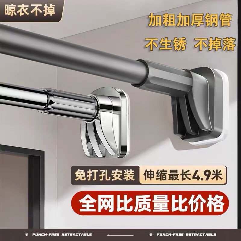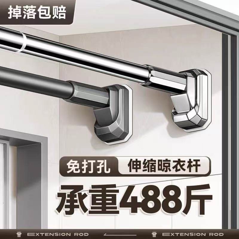 免打孔伸缩杆阳台晾衣架窗帘杆子挂衣杆卫生间晾衣杆可伸缩承重