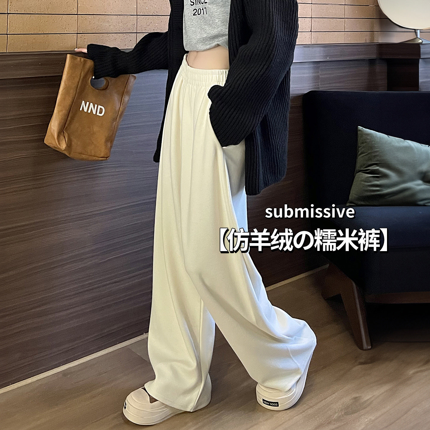 唐狮DESSO秋冬新款糯米裤高腰垂感宽松加绒直筒阔腿裤5