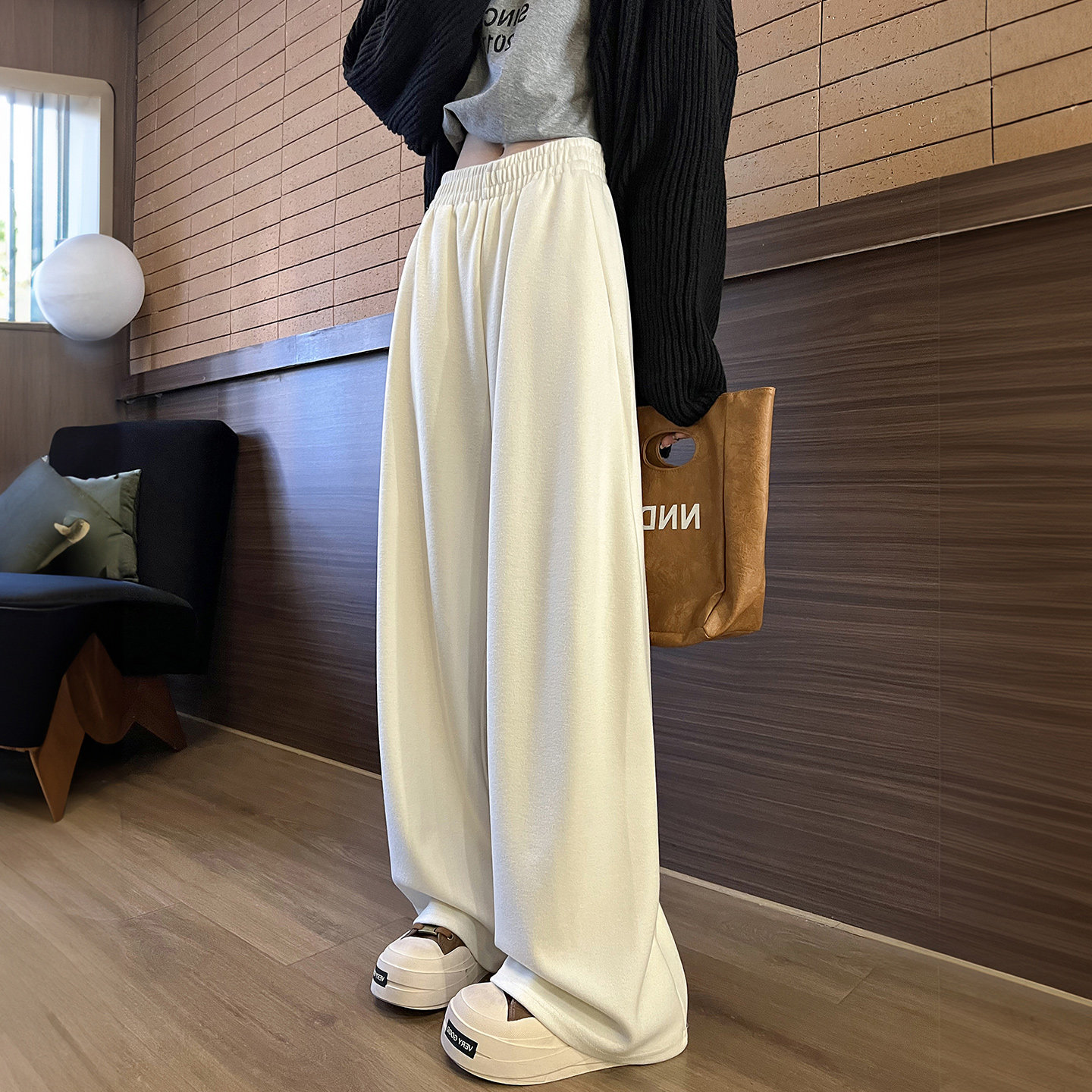 白色糯米阔腿裤女秋冬季加绒厚垂坠感软糯高级感2026新款直筒裤子