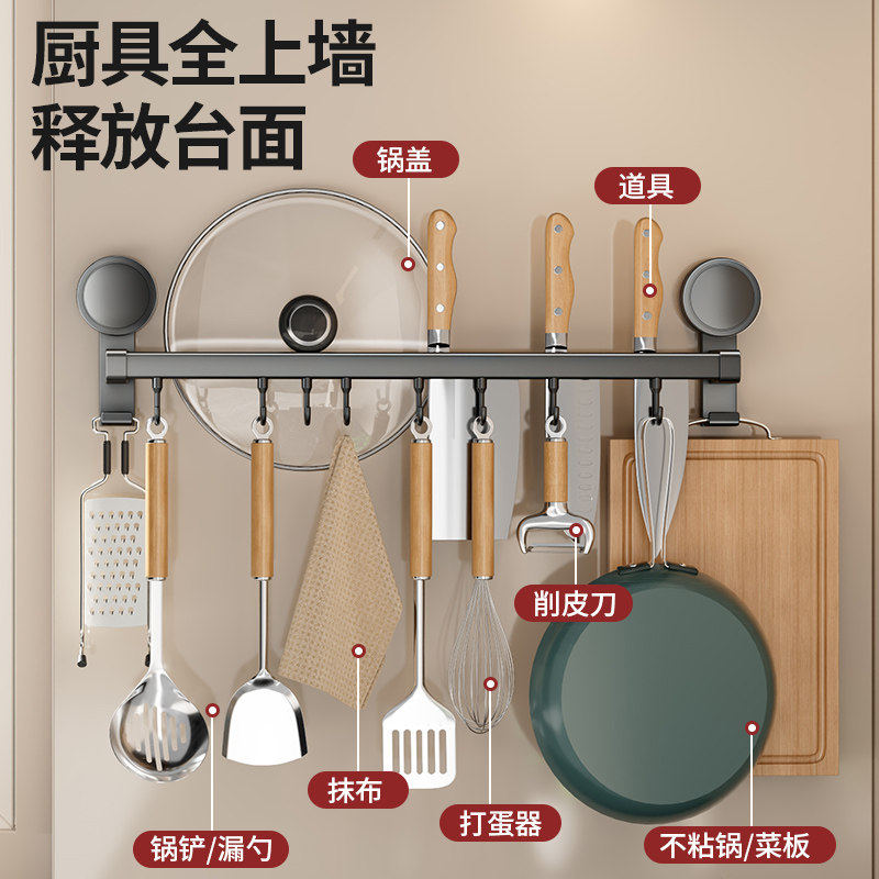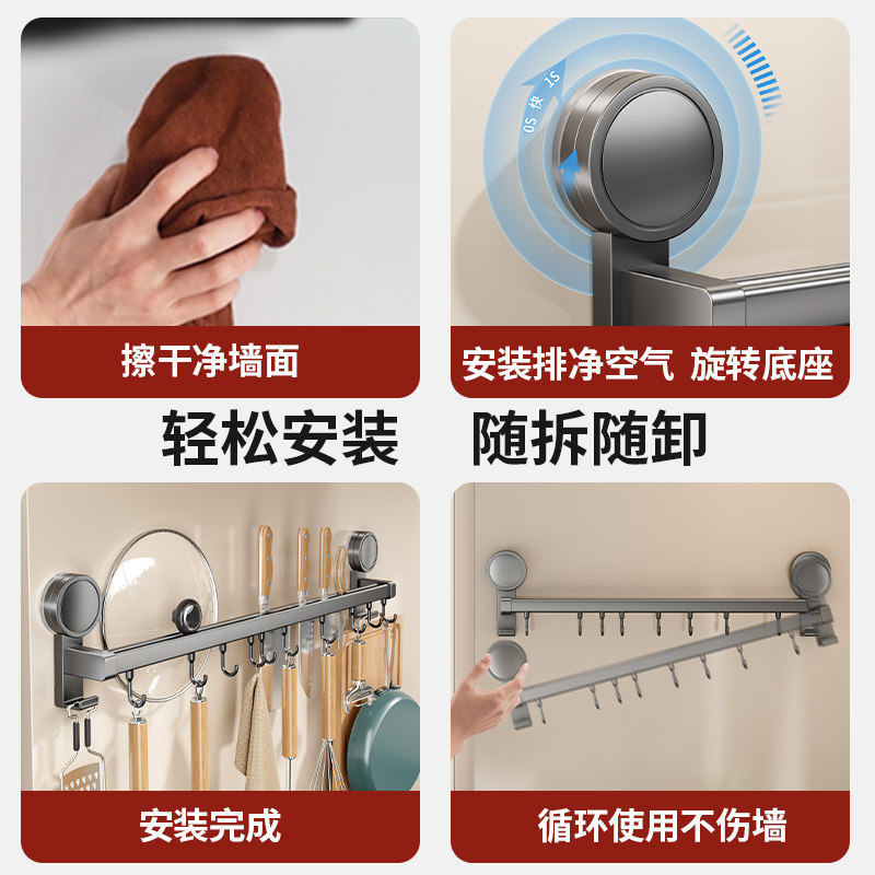 吸盘厨房挂钩免打孔壁挂式挂杆多功能置物架铲子勺子刀架收纳挂架