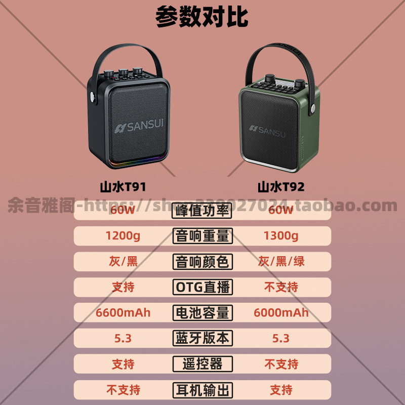 山水T92蓝牙大功率音箱广场舞户外便携K歌直播声卡乐器T91音响