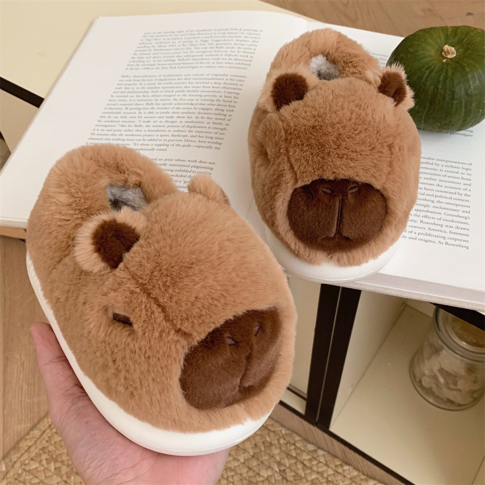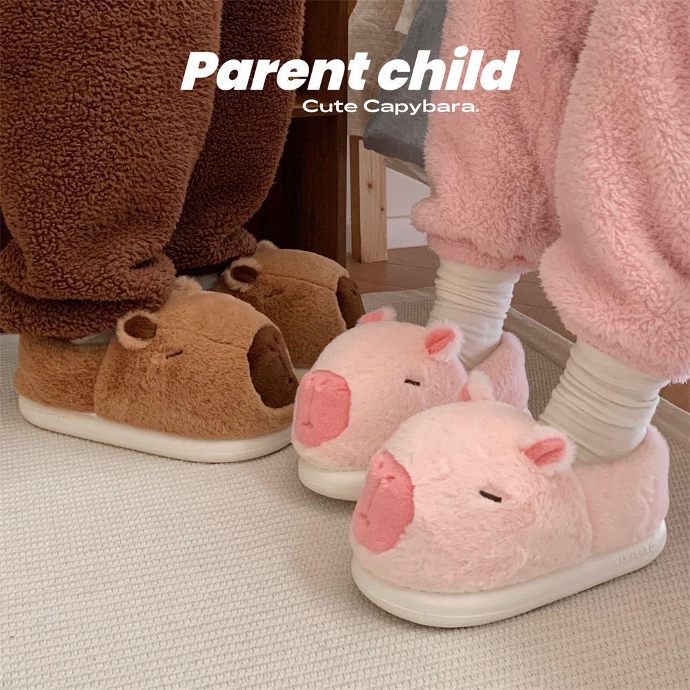 细细条男女居家冬季毛毛拖鞋ins可爱卡皮巴拉水豚亲子棉鞋全包