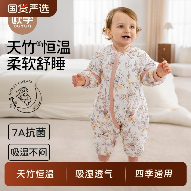 欧孕宝宝睡袋春秋冬款恒温婴儿防踢被子神器儿童分腿睡袋四季通用