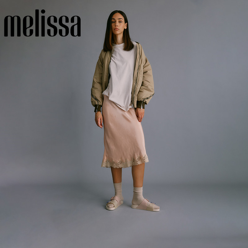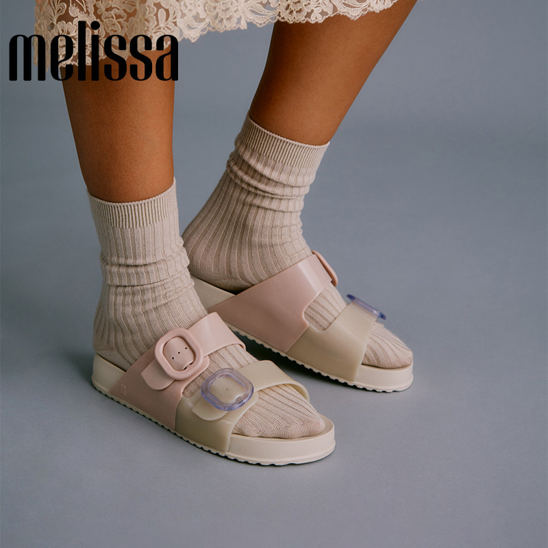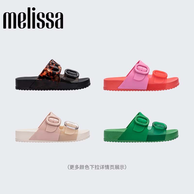 Melissa梅丽莎时尚双色拼色双根带女士椭圆扣凉鞋33913