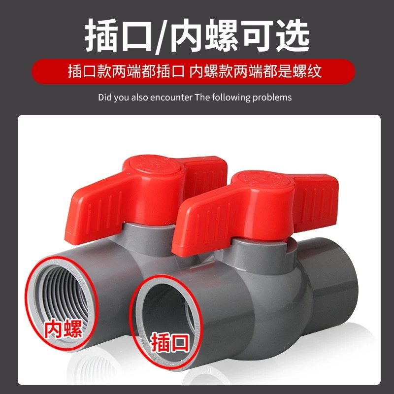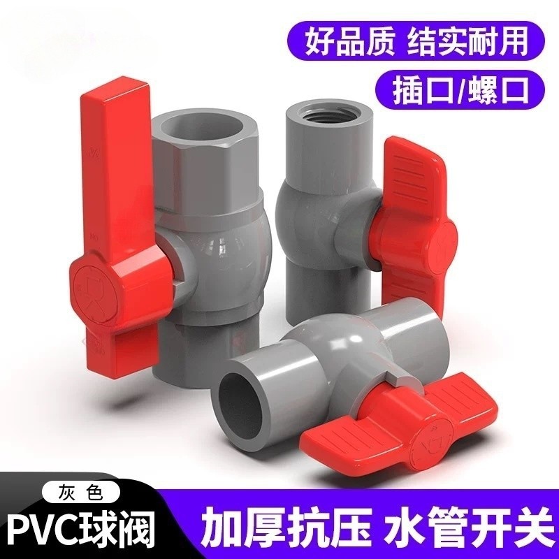 PVC球阀灰色阀门开关阀给水管4分6分1寸塑料加厚插口内螺纹口大全